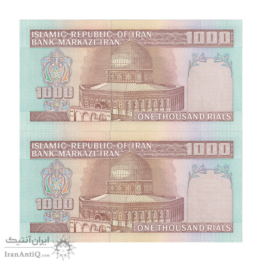 اسکناس 1000 ریال (ایروانی - قاسمی) فیلیگران فهمیده با خط یقه - جفت - UNC64 - جمهوری اسلامی