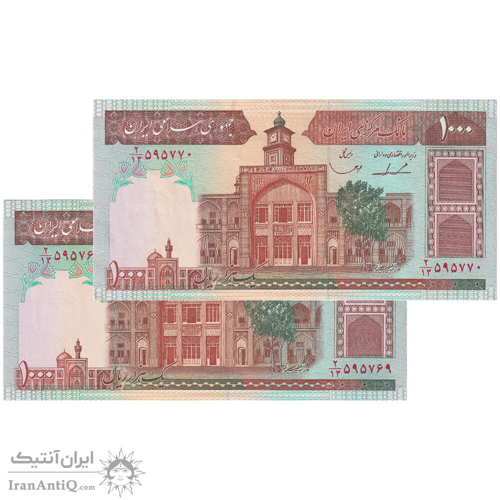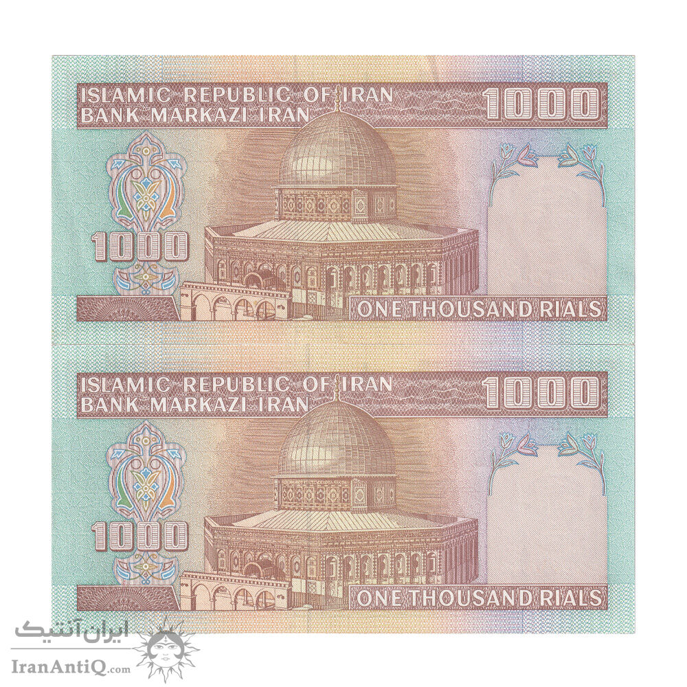 اسکناس 1000 ریال (ایروانی - قاسمی) فیلیگران بدون خط یقه - جفت - AU53 - جمهوری اسلامی
