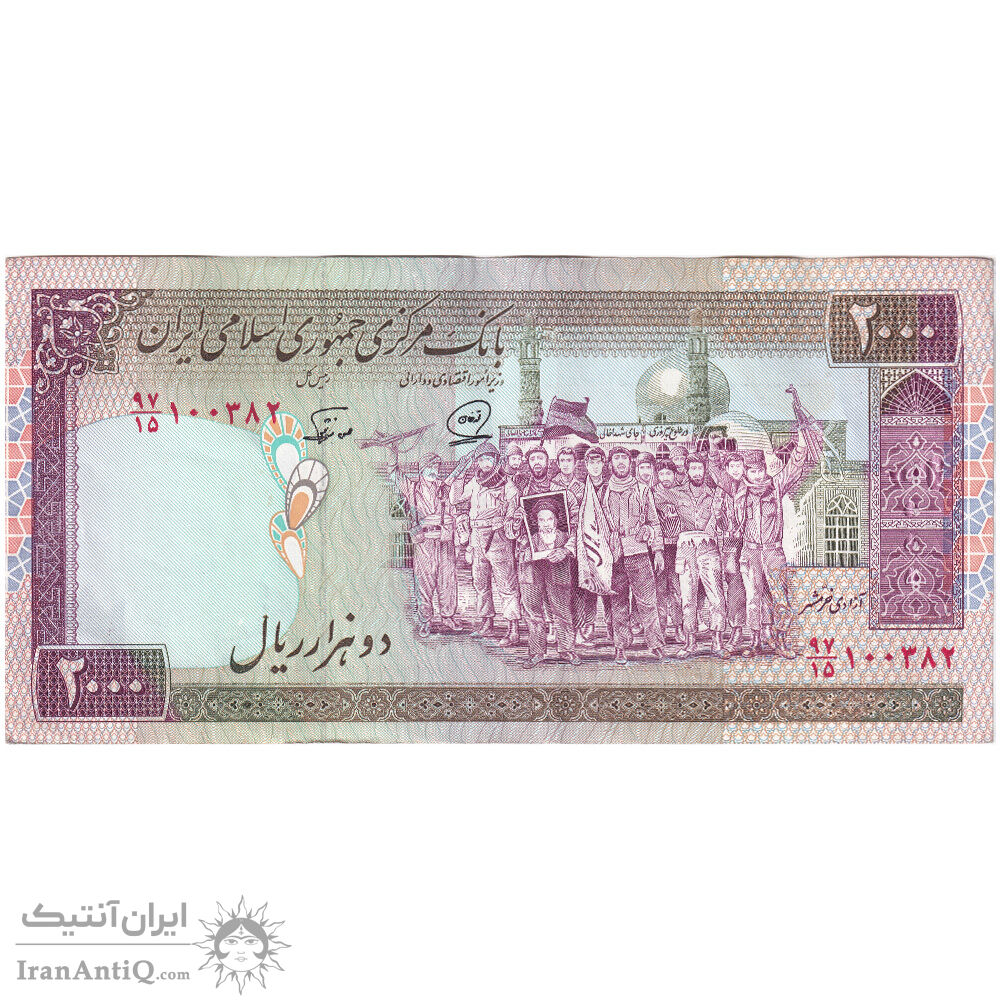 اسکناس 2000 ریال (محمدخان - نوربخش) شماره بزرگ - نخ نستعلیق - تک - EF45 - جمهوری اسلامی