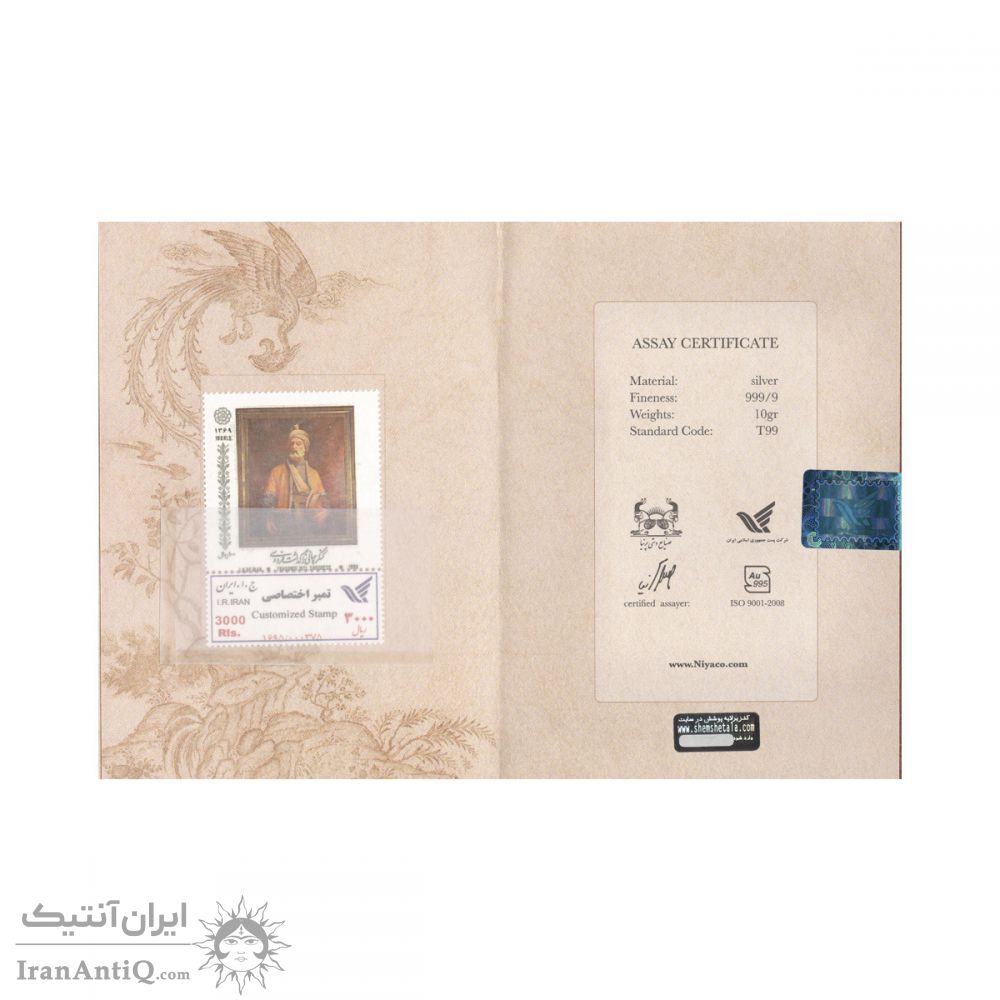 محتویات جعبه : تمبر نقره - تمبر کاغذی - هولوگرام اصالت - کتابچه