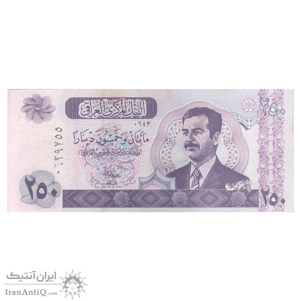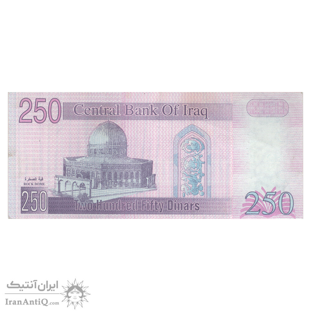 اسکناس 250 دینار 2002 جمهوری - نوشته پشت با رنگ ثابت - تک - EF45 - عراق