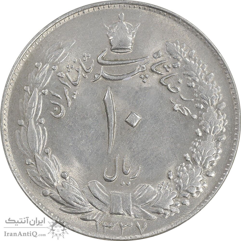 سکه 10 ریال 1337 - MS63 - محمد رضا شاه