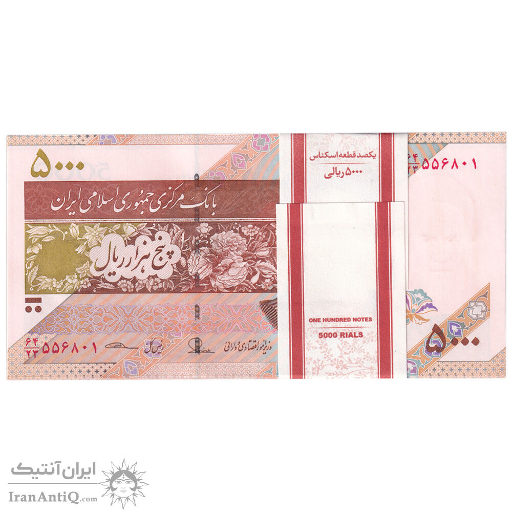 بسته اسکناس 5000 ریال امام (طیب نیا - سیف) - نوار آرم بانک مرکزی - UNC - جمهوری اسلامی