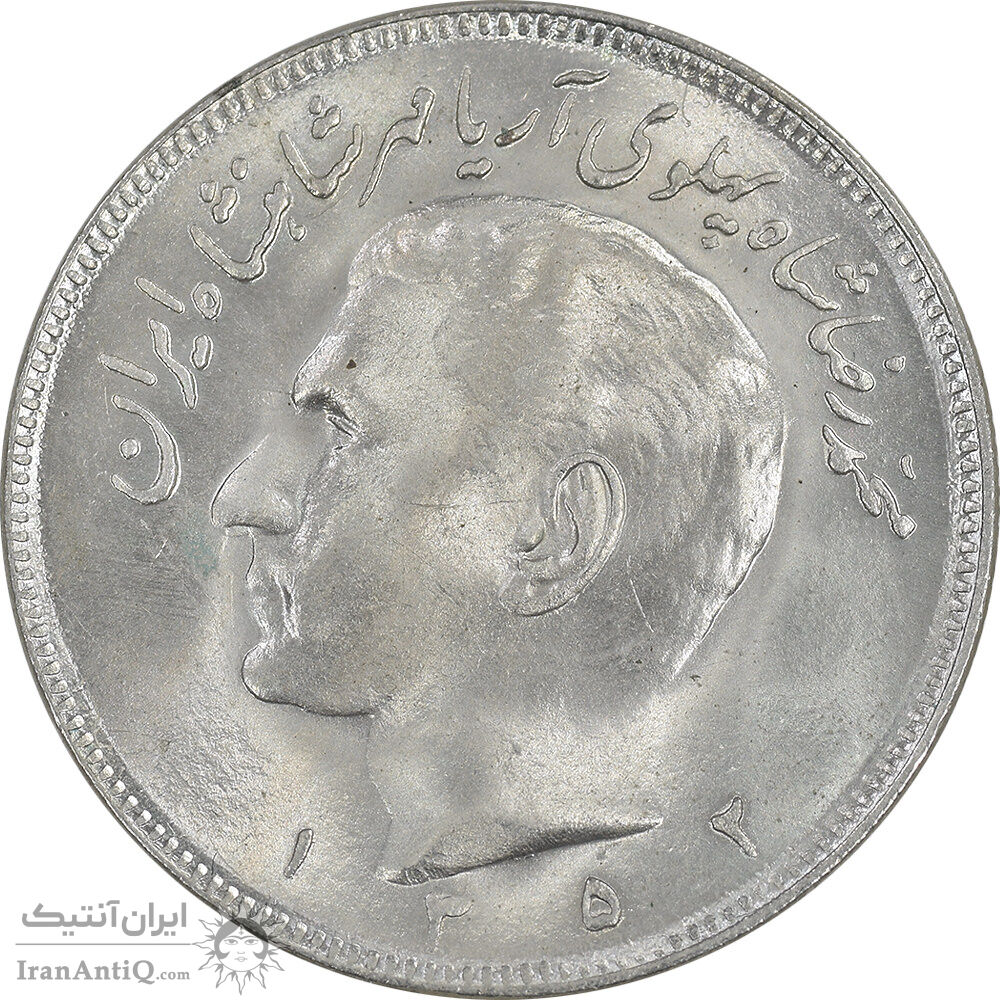 سکه 20 ریال 1352 عددی - MS63 - محمد رضا شاه