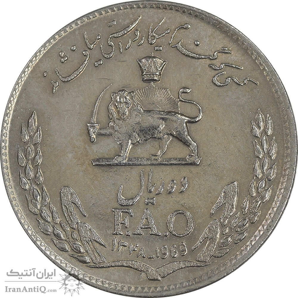 سکه 10 ریال 1348 فائو - MS61 - محمد رضا شاه