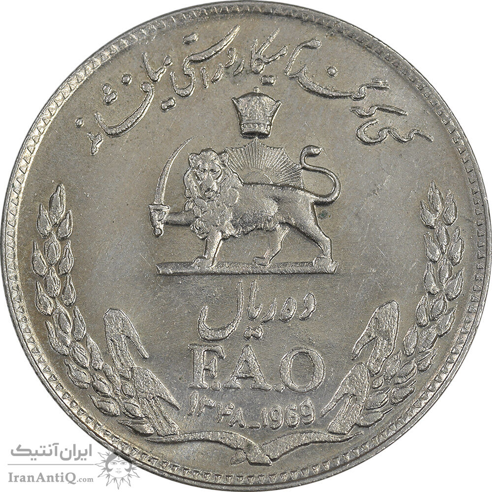 سکه 10 ریال 1348 فائو - MS61 - محمد رضا شاه