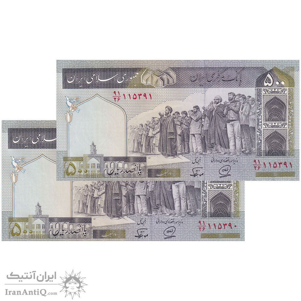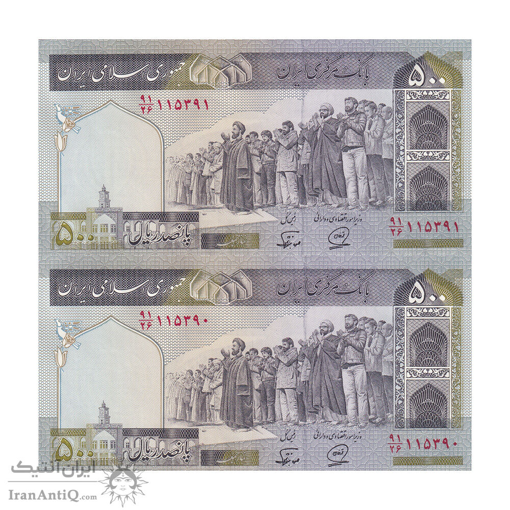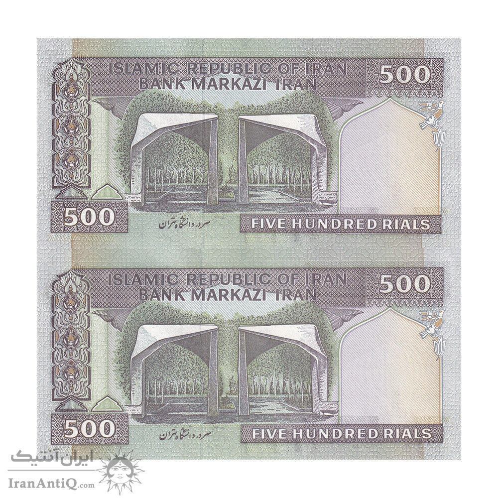 اسکناس 500 ریال (محمدخان - نوربخش) فیلیگران الله - جفت - UNC64 - جمهوری اسلامی