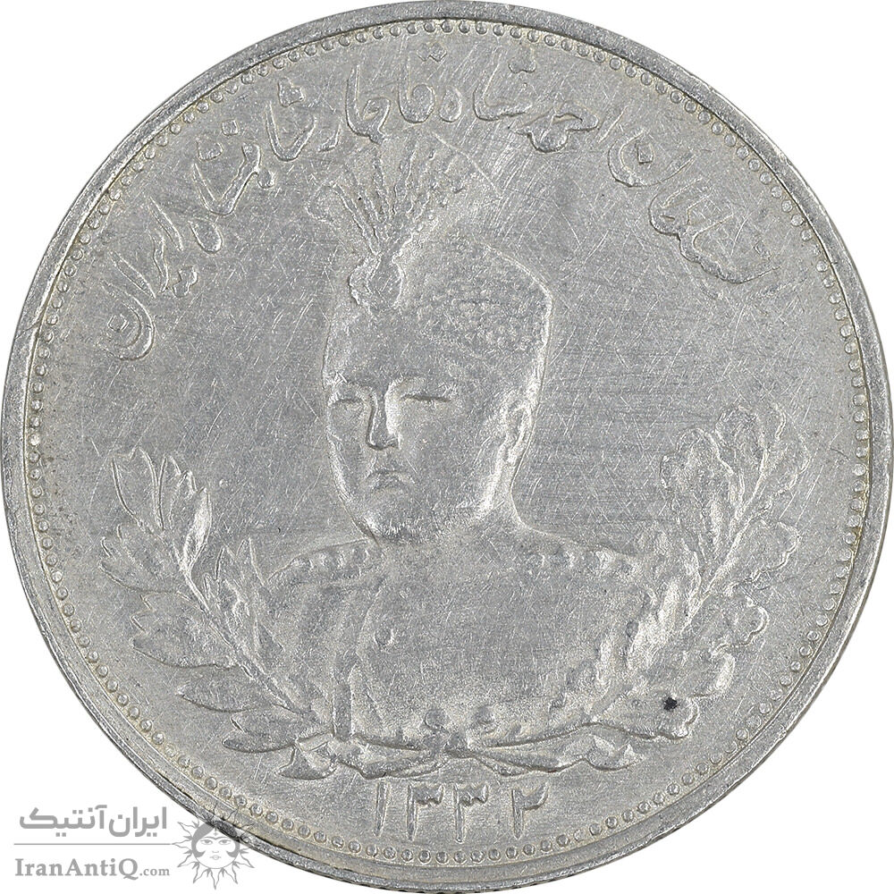 سکه 2000 دینار 1332 تصویری - صورت برجسته - AU53 - احمد شاه
