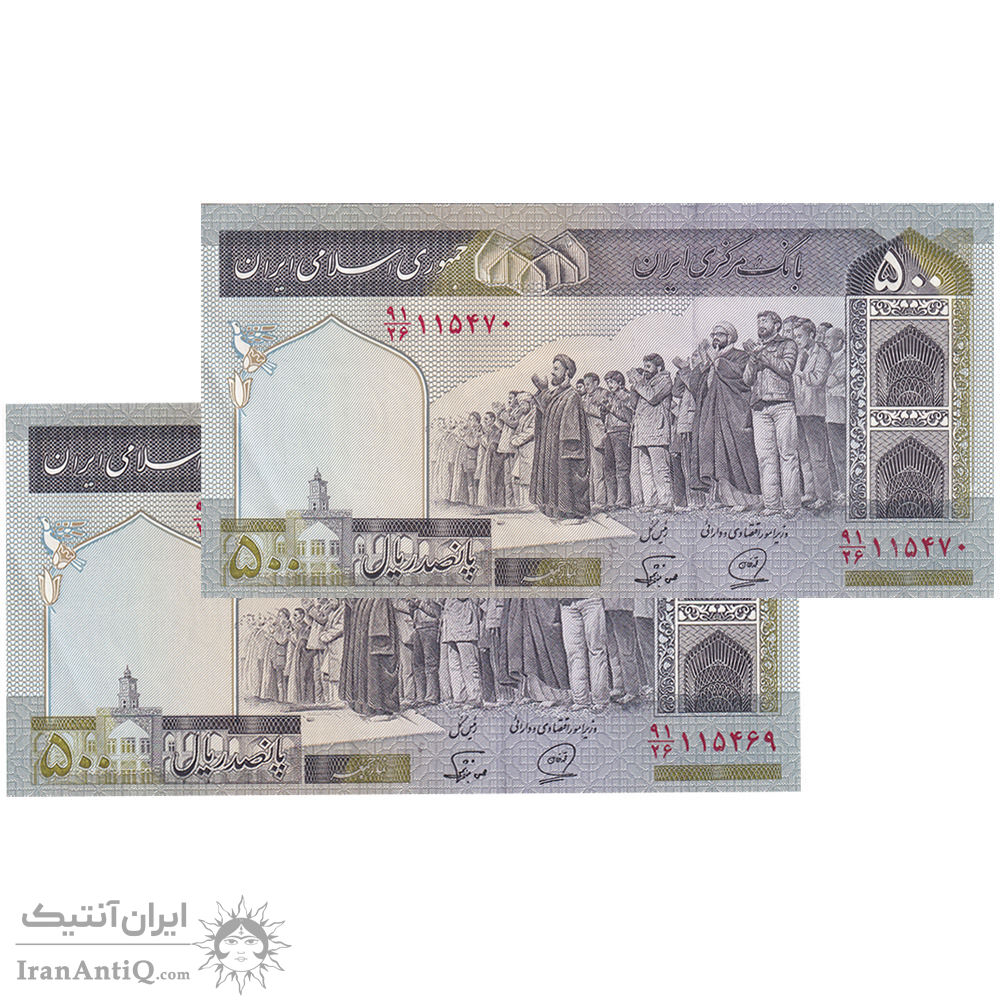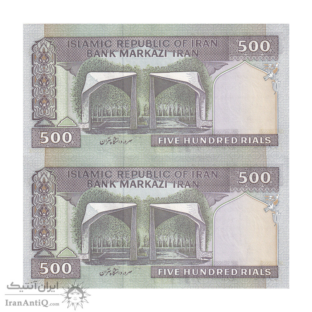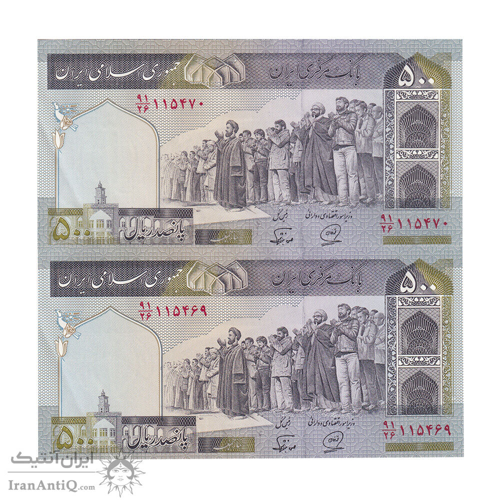 اسکناس 500 ریال (محمدخان - نوربخش) فیلیگران الله - جفت - AU58 - جمهوری اسلامی