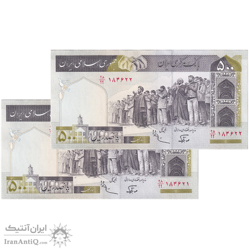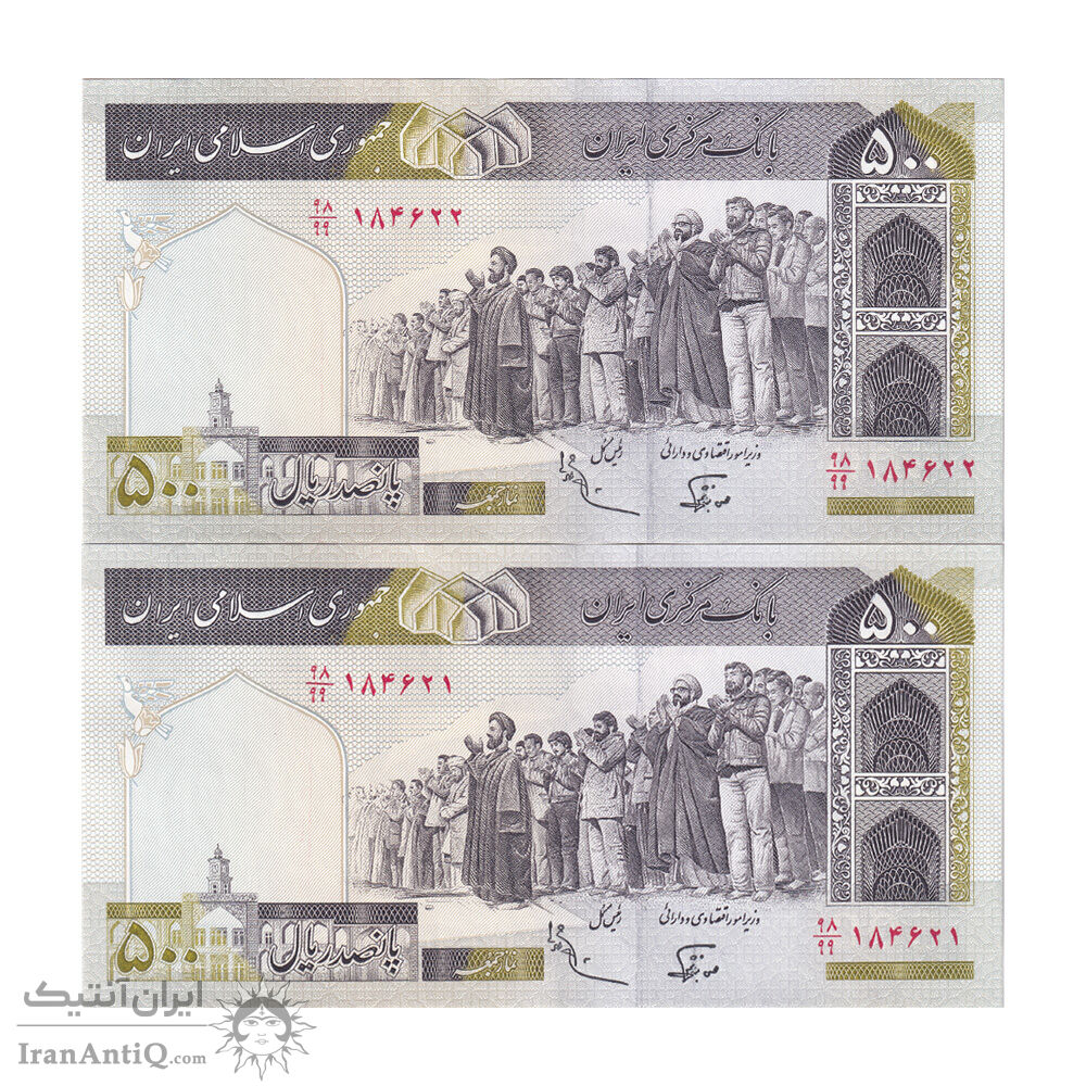 اسکناس 500 ریال (نوربخش - عادلی) - فیلیگران الله - جایگزین - جفت - UNC63 - جمهوری اسلامی