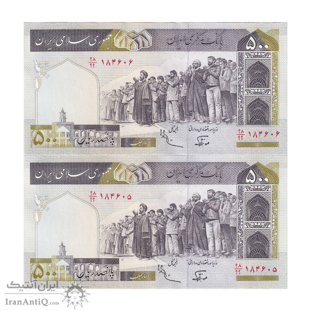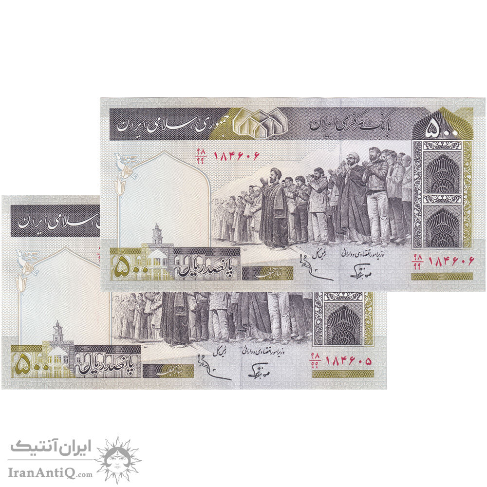 اسکناس 500 ریال (نوربخش - عادلی) - فیلیگران الله - جایگزین - جفت - UNC64 - جمهوری اسلامی