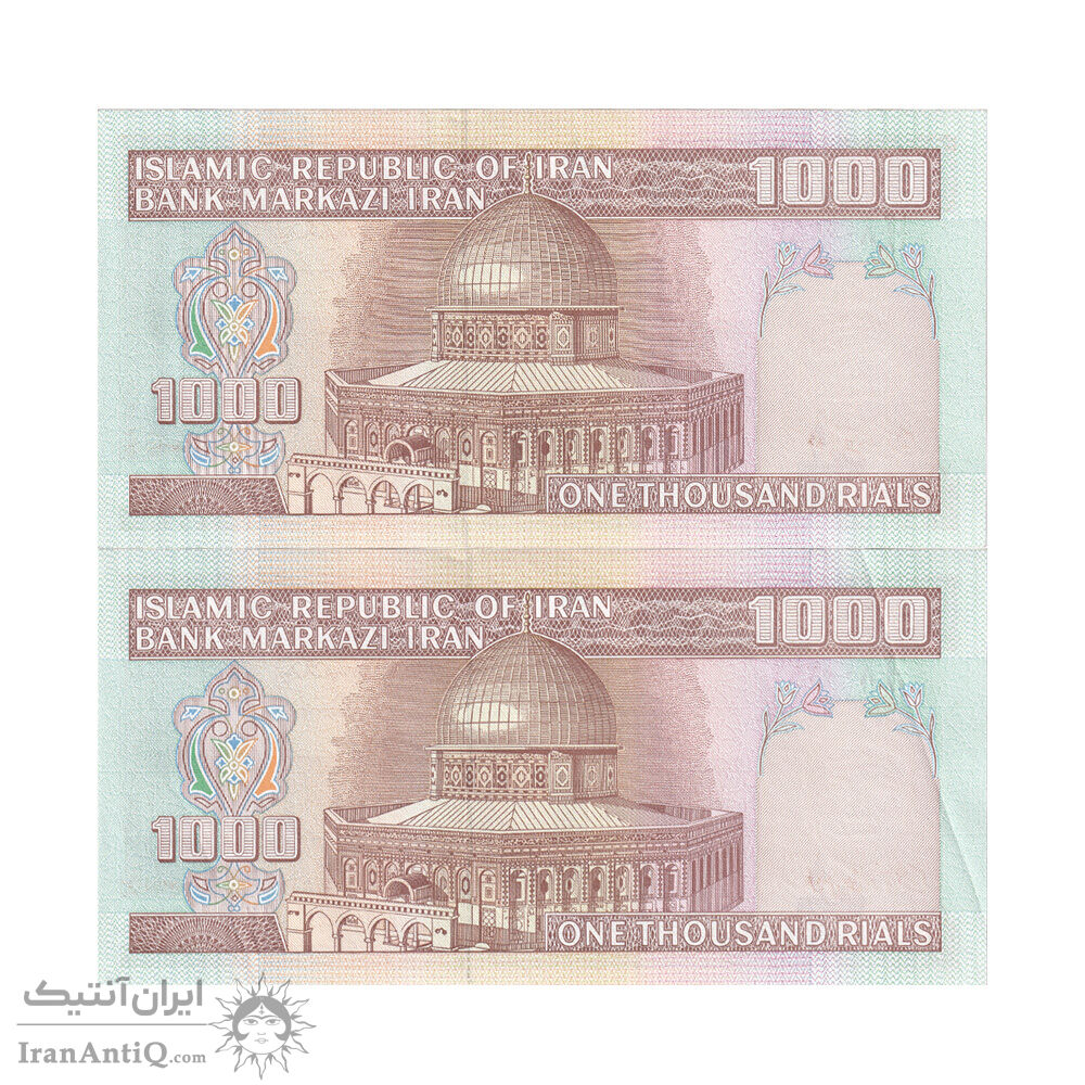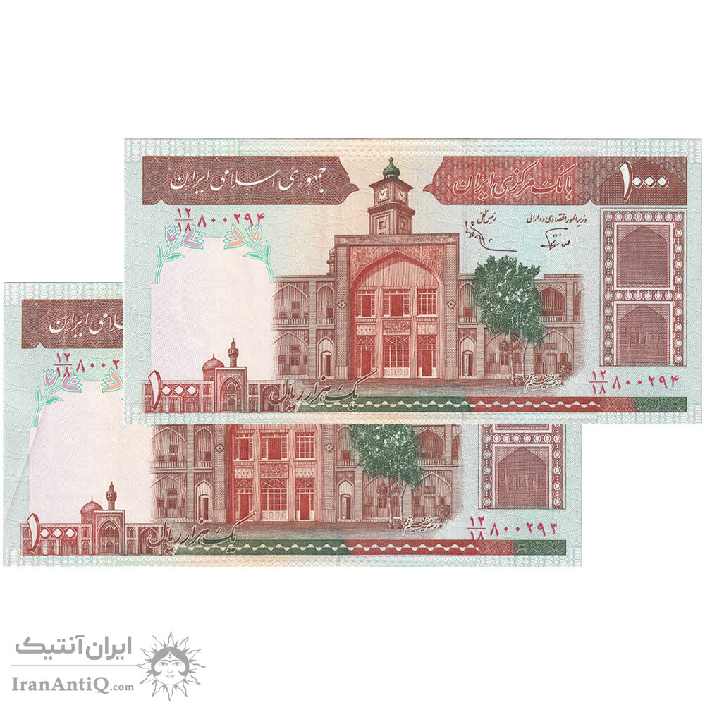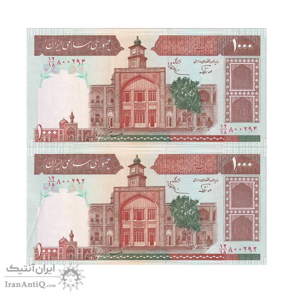 اسکناس 1000 ریال (نوربخش - عادلی) امضاء بزرگ - شماره کوچک - جفت - جمهوری اسلامی