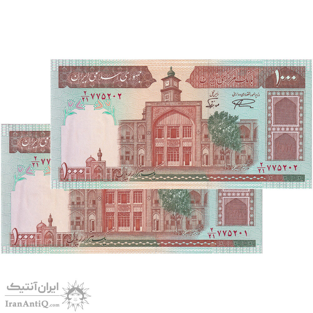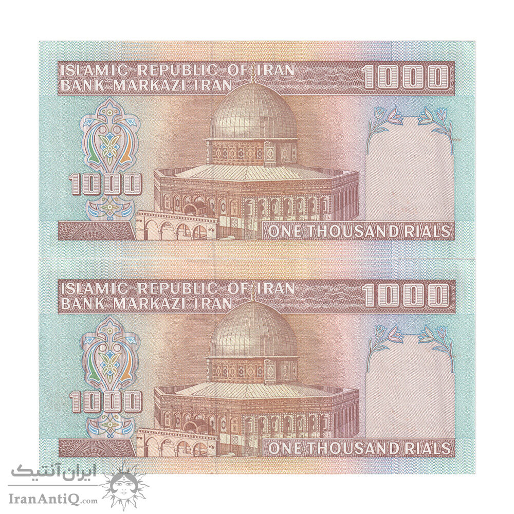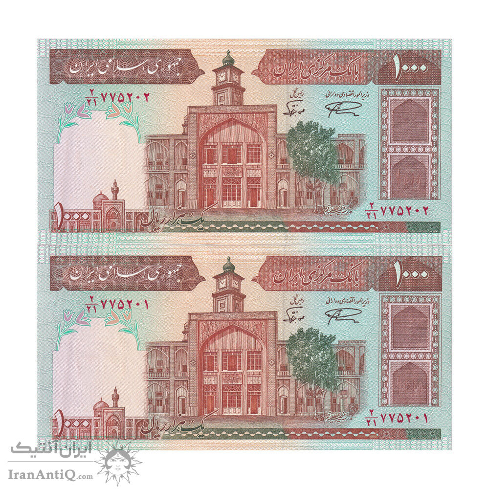 اسکناس 1000 ریال (نمازی - نوربخش) فیلیگران فهمیده بدون خط یقه - جفت - UNC61 - جمهوری اسلامی