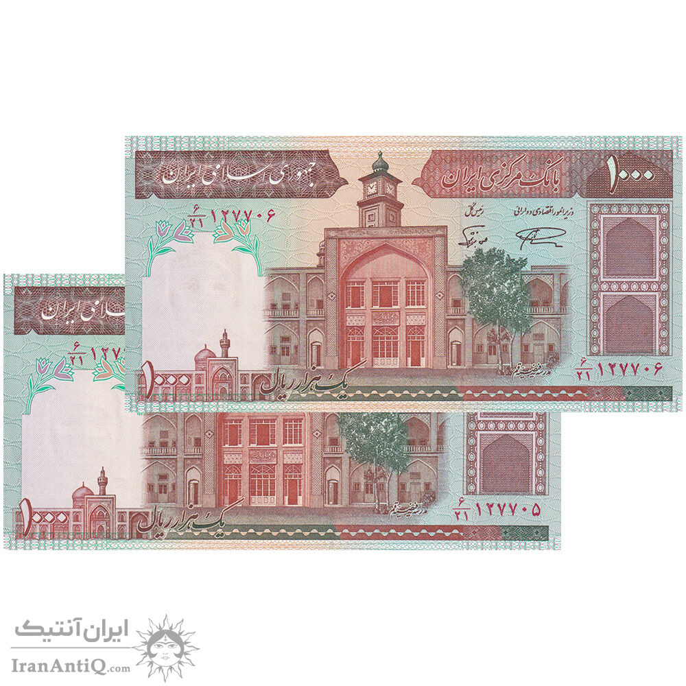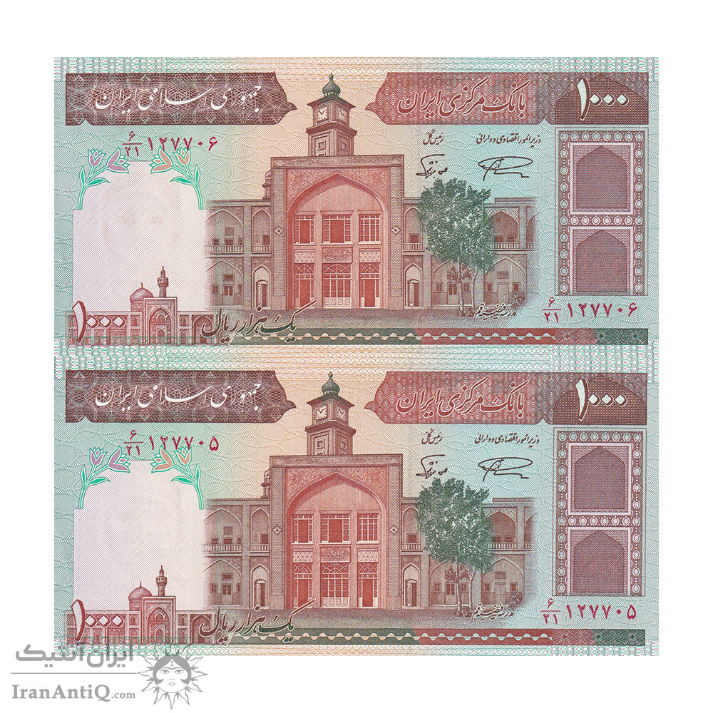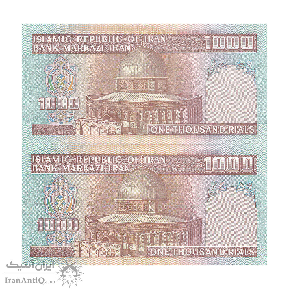 اسکناس 1000 ریال (نمازی - نوربخش) فیلیگران فهمیده بدون خط یقه - جفت - UNC63 - جمهوری اسلامی