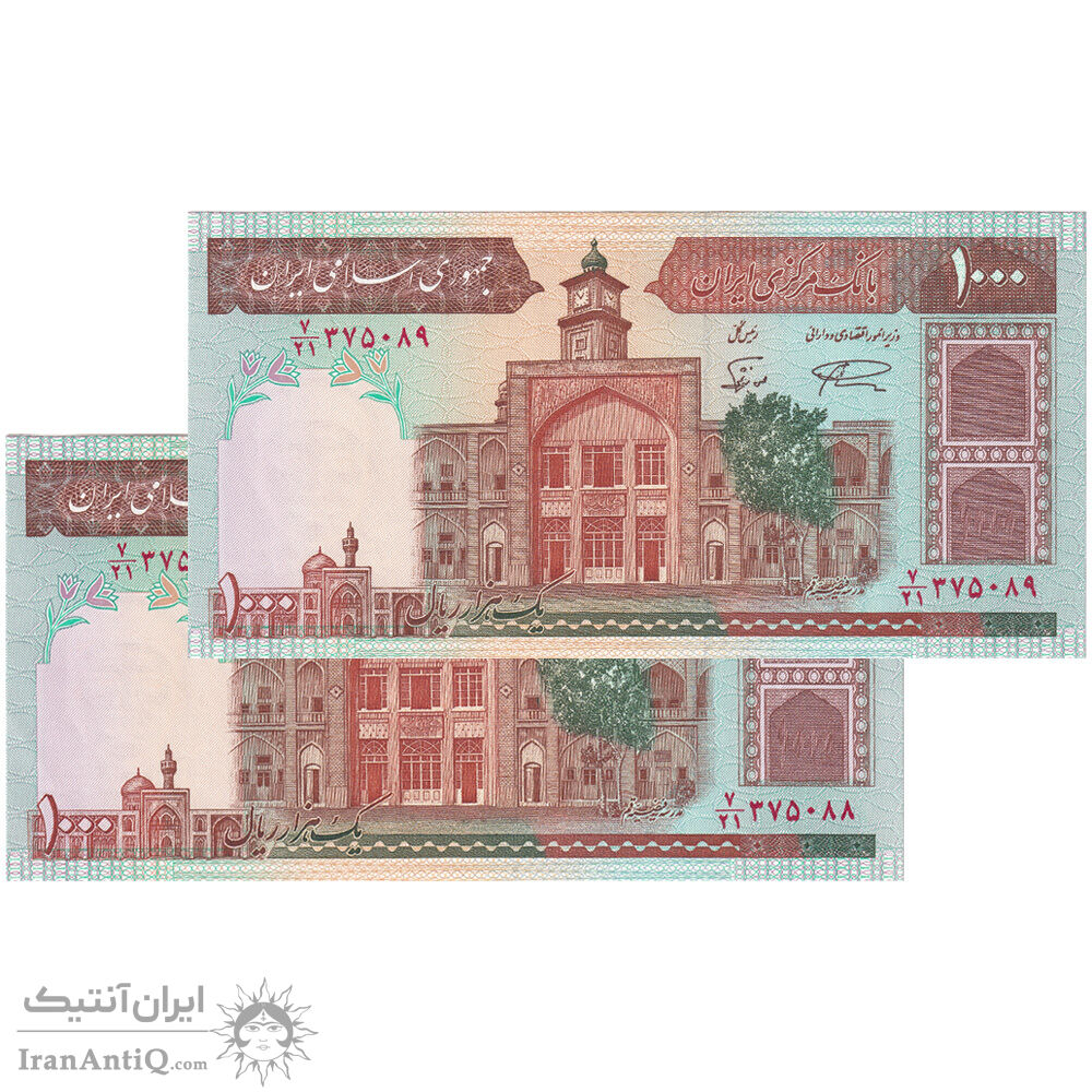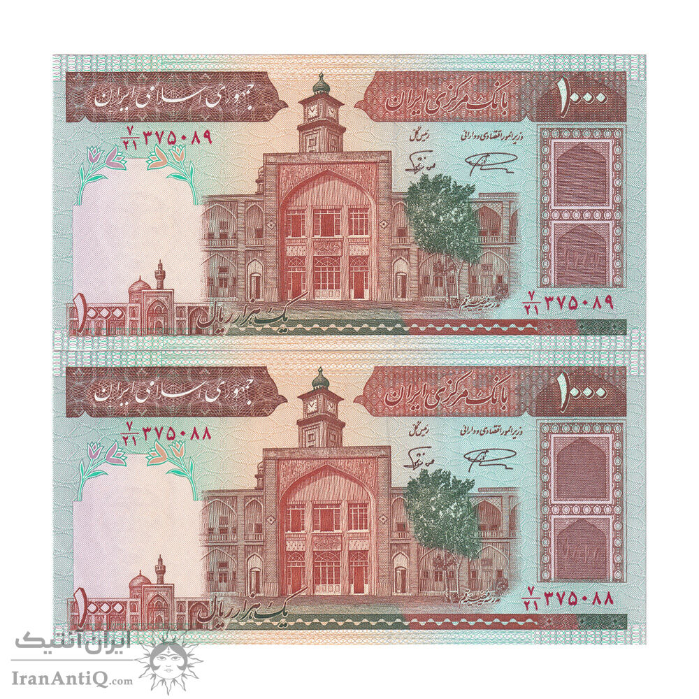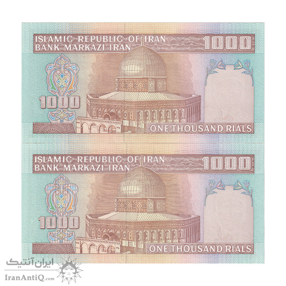 اسکناس 1000 ریال (نمازی - نوربخش) فیلیگران فهمیده با خط یقه - جفت - UNC62 - جمهوری اسلامی