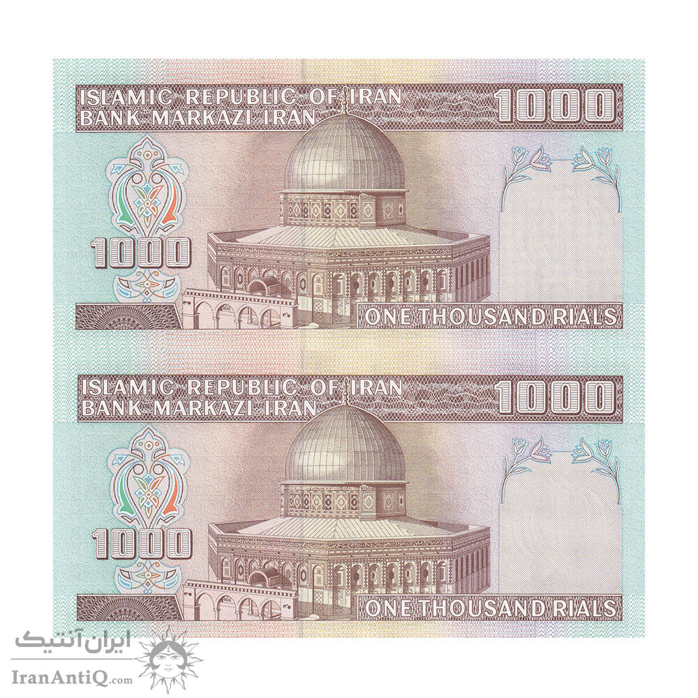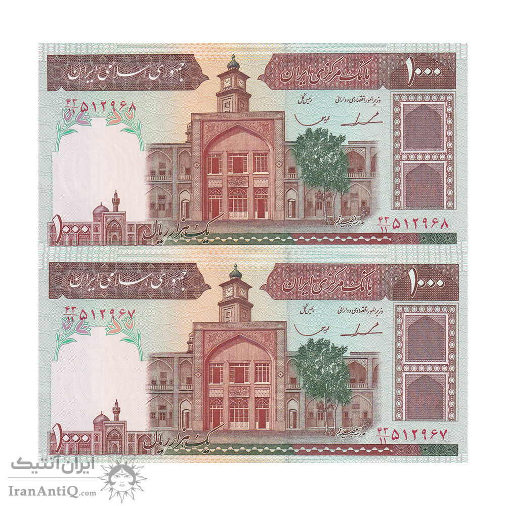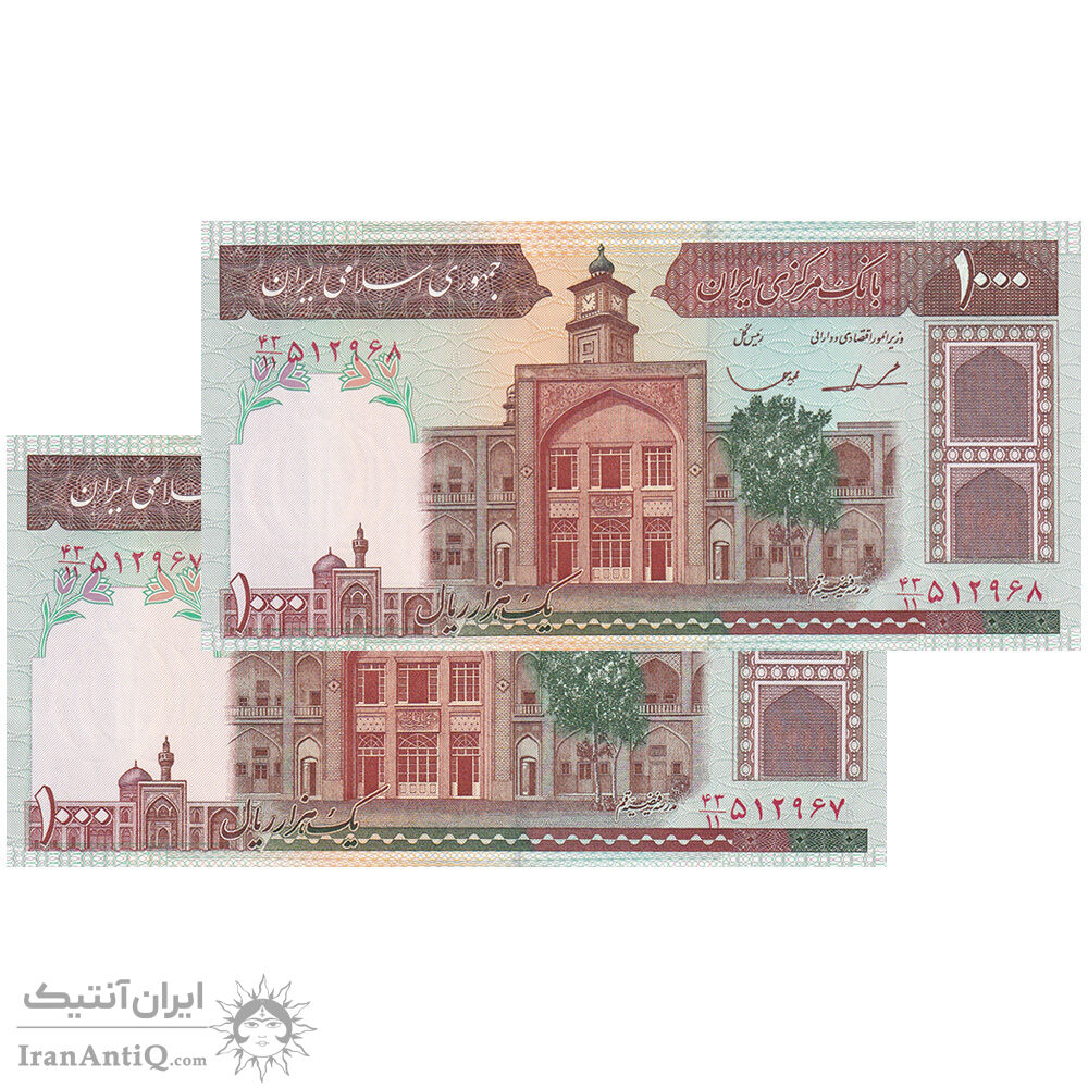 اسکناس 1000 ریال (ایروانی - قاسمی) فیلیگران الله - شماره بزرگ - جفت - UNC62 - جمهوری اسلامی