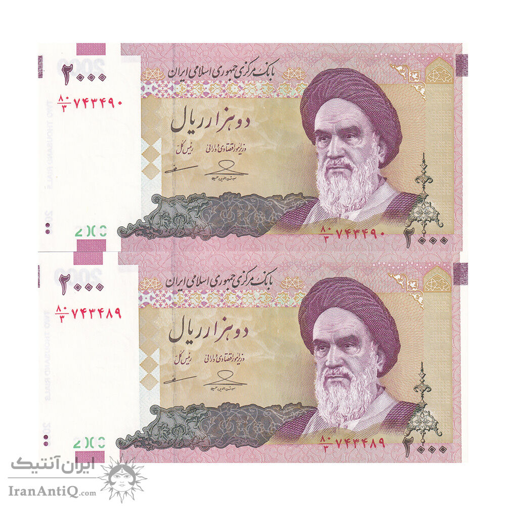 اسکناس 2000 ریال (حسینی - مظاهری) - جفت - UNC64 - جمهوری اسلامی