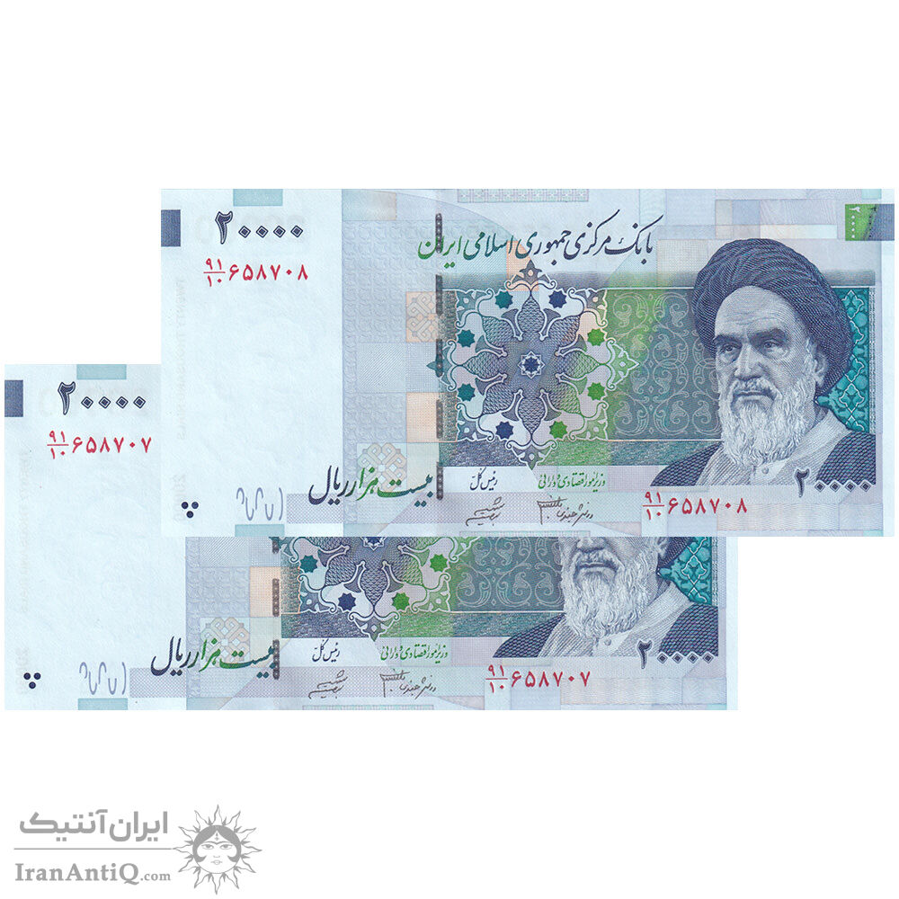 اسکناس 20000 ریال (جعفری - شیبانی) فیلیگران 7 - جفت - UNC63 - جمهوری اسلامی
