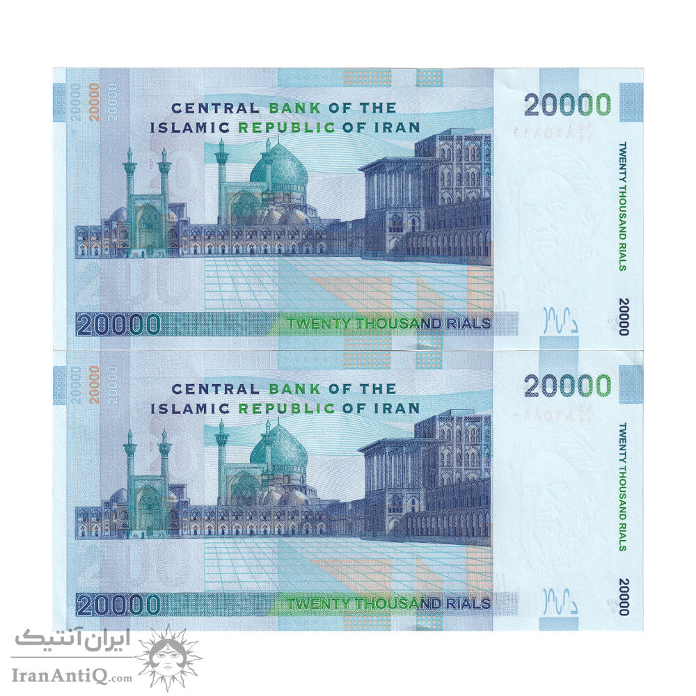 اسکناس 20000 ریال (جعفری - مظاهری) - جفت - UNC63 - جمهوری اسلامی