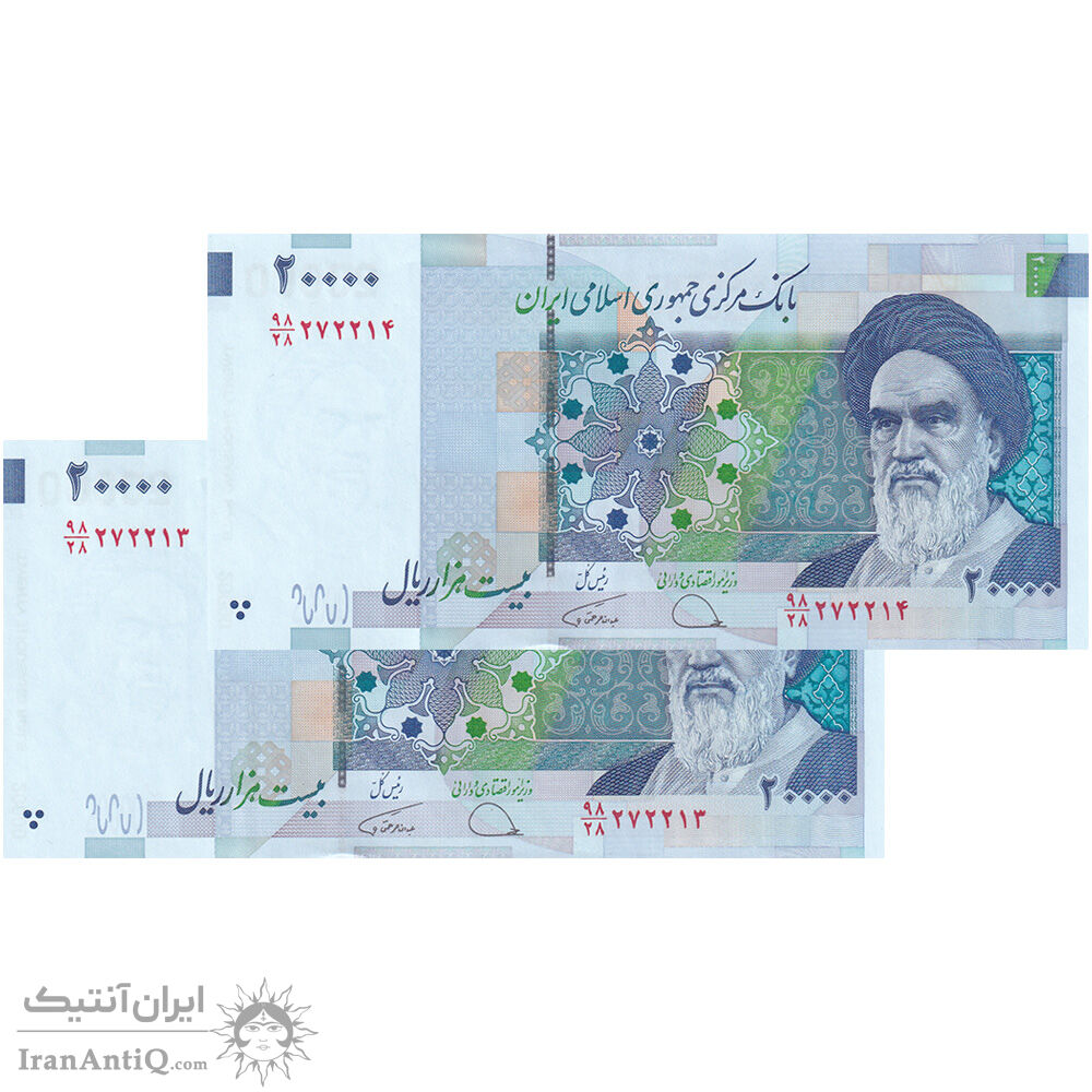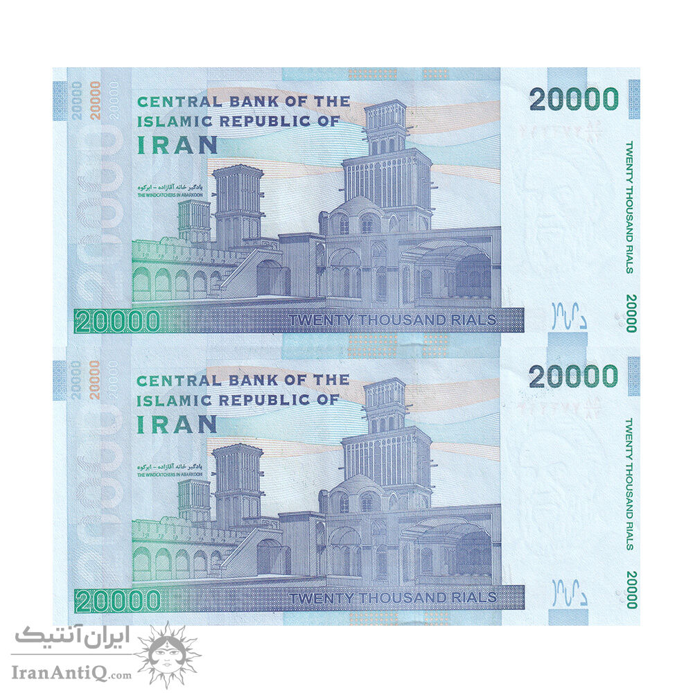 اسکناس 20000 ریال (دژپسند - همتی) نخ نوع 2 - جفت - UNC63 - جمهوری اسلامی