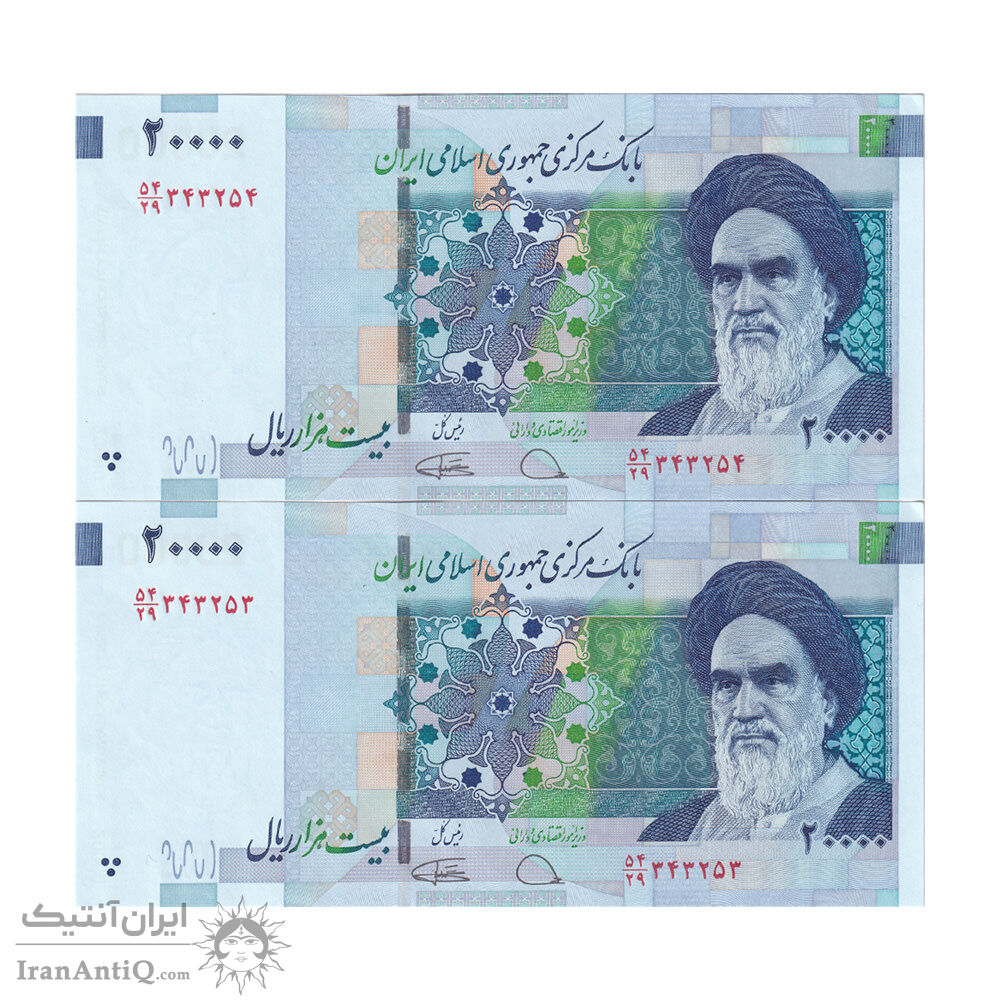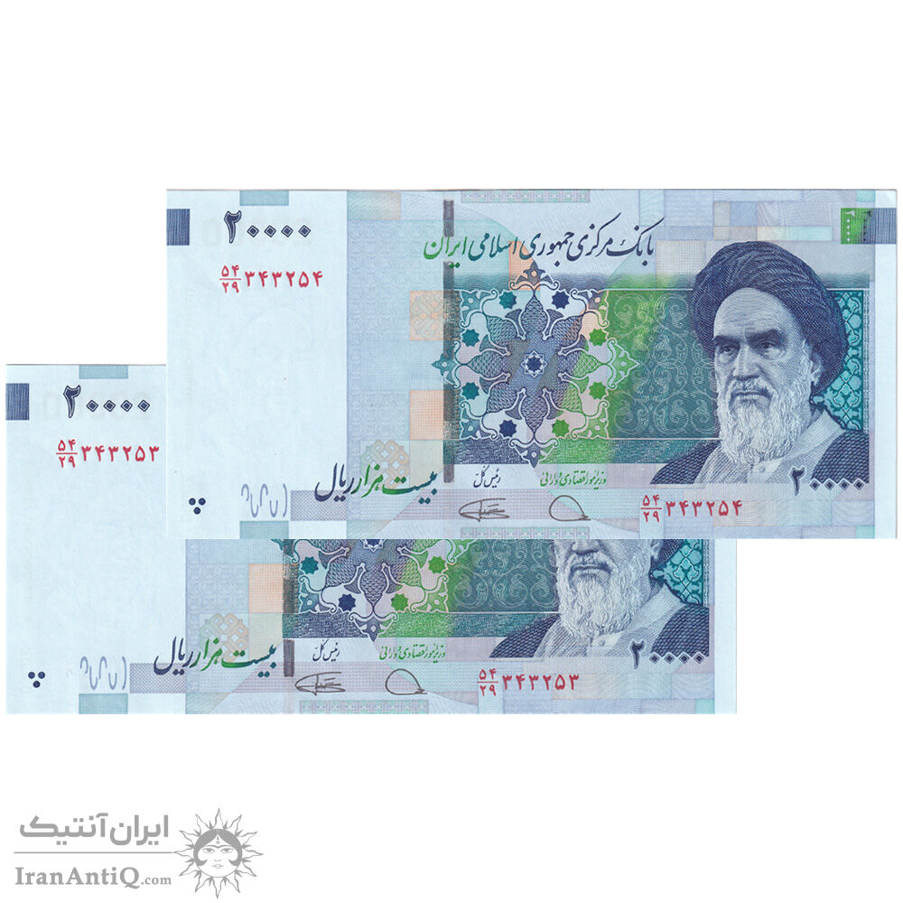 اسکناس 20000 ریال (دژپسند - کمیجانی) نخ نوع 1 - جفت - UNC62 - جمهوری اسلامی