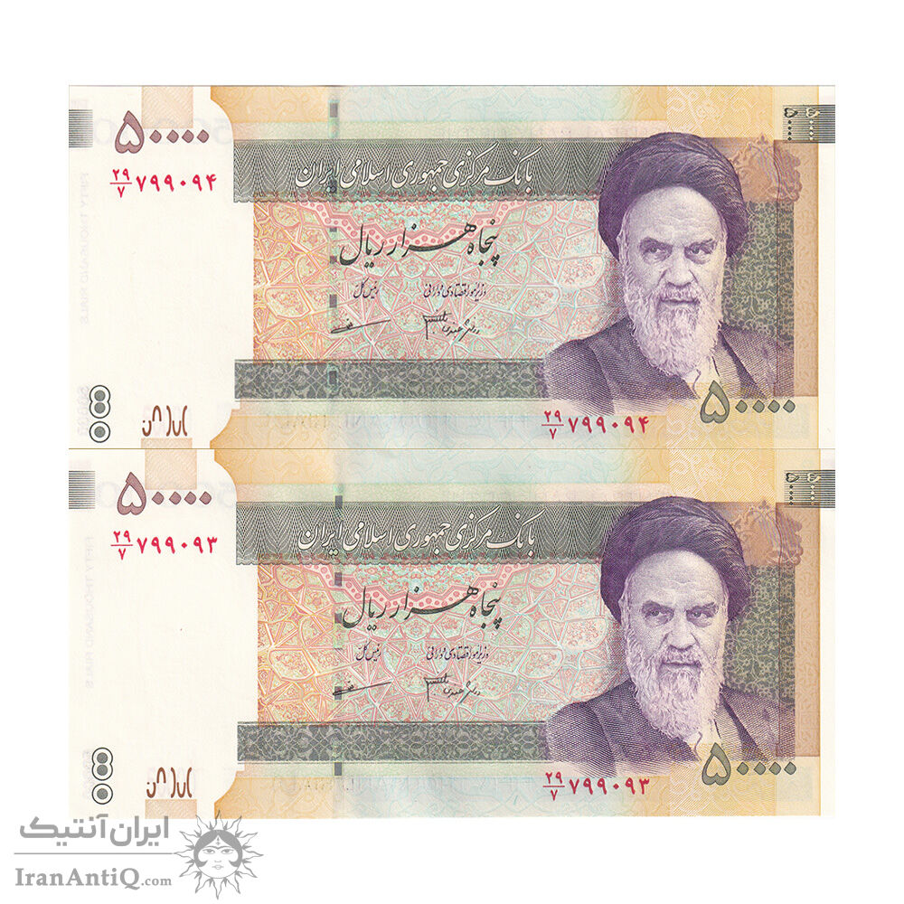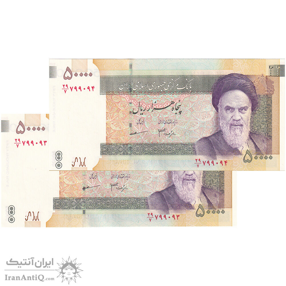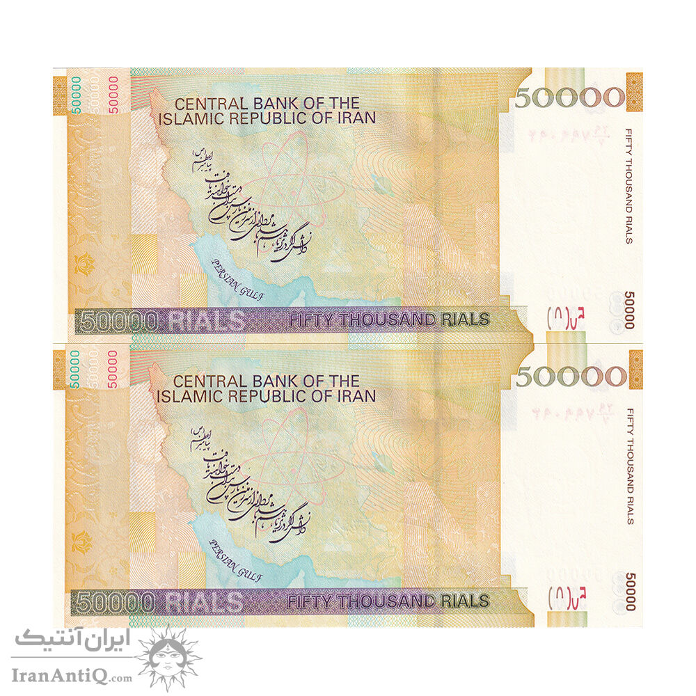 اسکناس 50000 ریال (جعفری - مظاهری) فیلیگران کوچک - جفت - UNC63 - جمهوری اسلامی