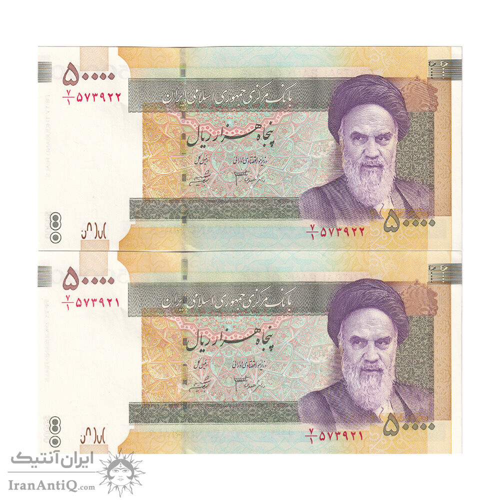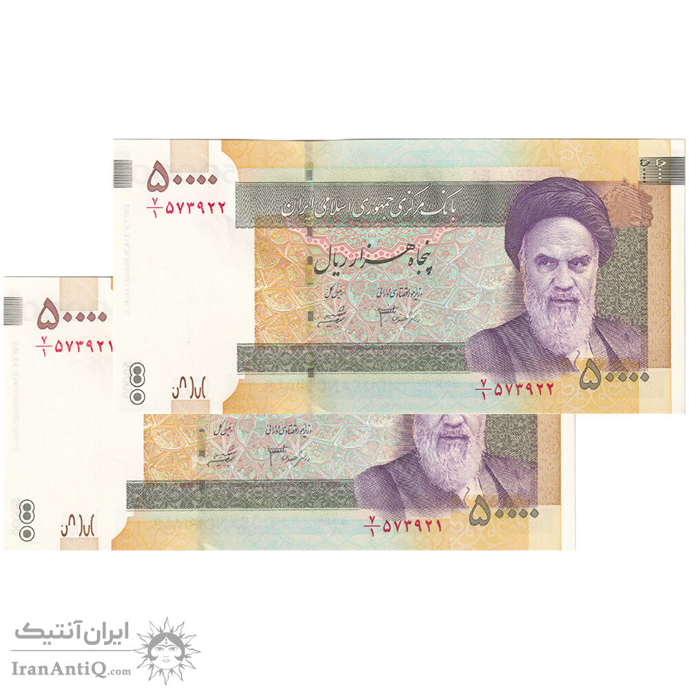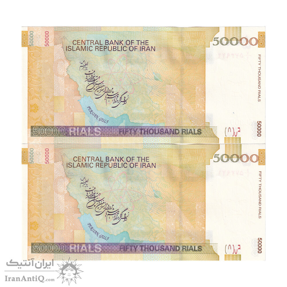 اسکناس 50000 ریال (جعفری - شیبانی) فیلیگران 50000 بزرگ - جفت - UNC63 - جمهوری اسلامی