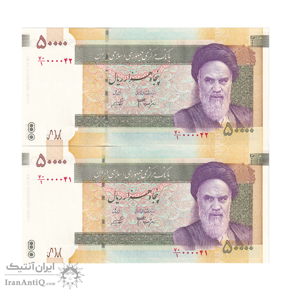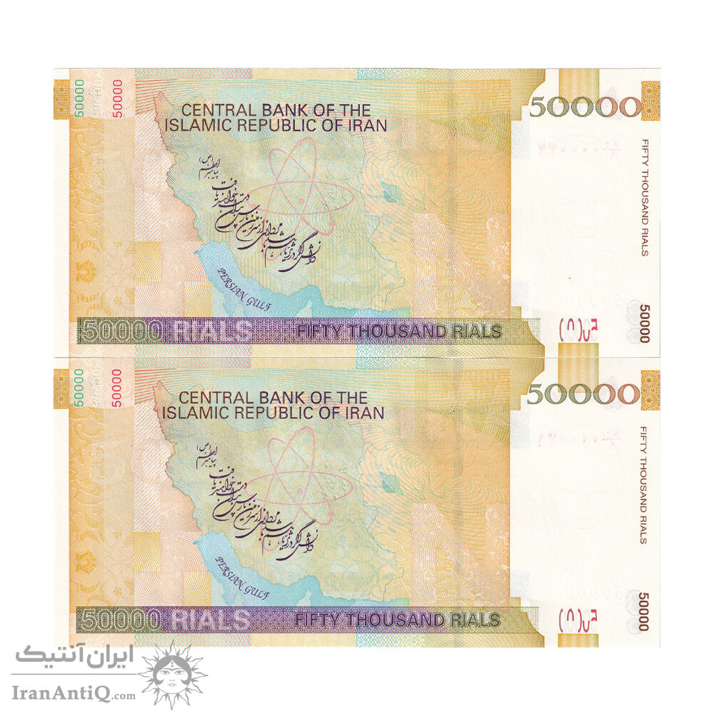 اسکناس 50000 ریال (جعفری - شیبانی) فیلیگران 50000 کوچک - جفت - UNC63 - جمهوری اسلامی