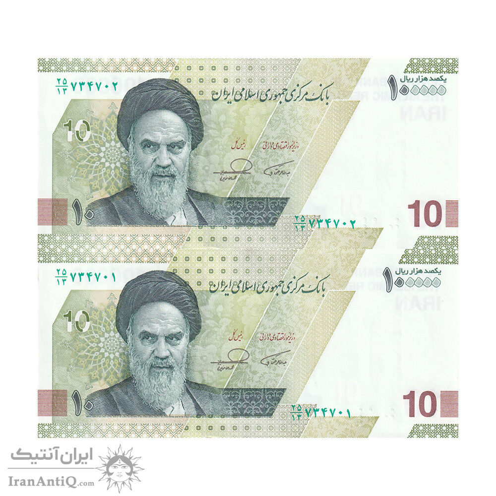 اسکناس 100000 ریال (همتی - فرزین) - جفت - UNC63 - جمهوری اسلامی