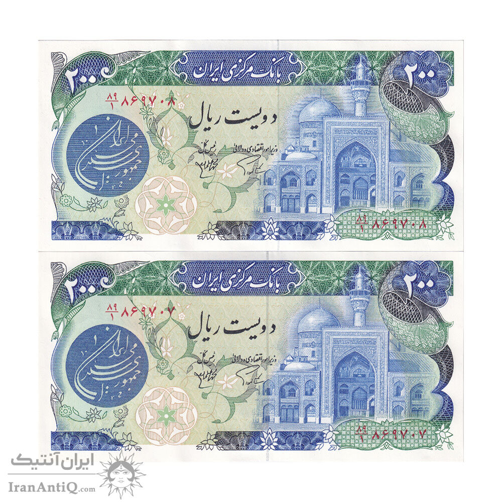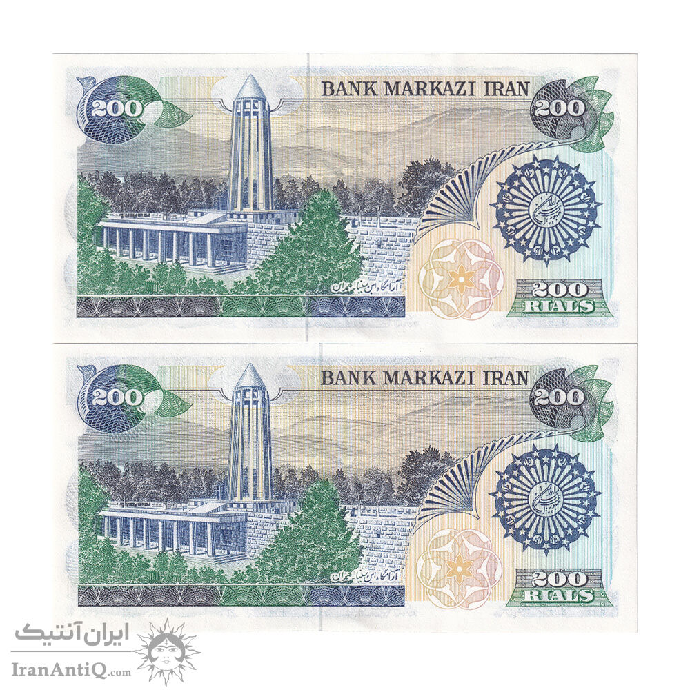 اسکناس 200 ریال (اردلان - مولوی) فیلیگران شاه - جفت - UNC63 - جمهوری اسلامی