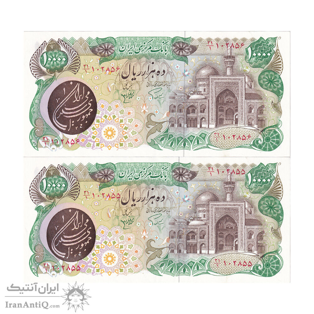 اسکناس 10000 ریال (اردلان - مولوی) فیلیگران بیضی - جفت - UNC61 - جمهوری اسلامی