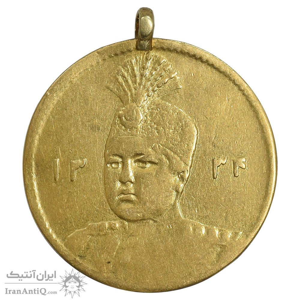 سکه طلا 5000 دینار 1334 تصویری - EF - احمد شاه