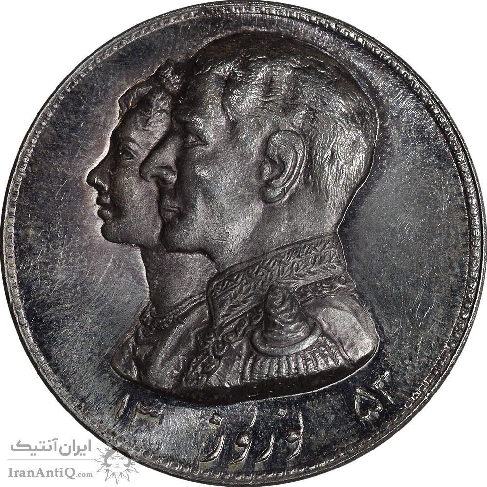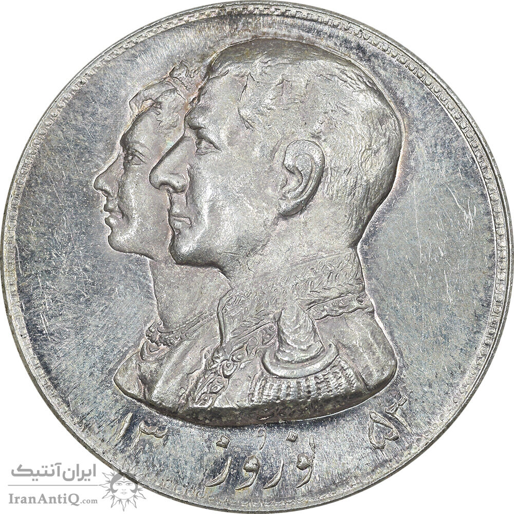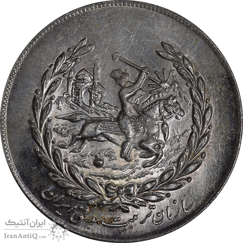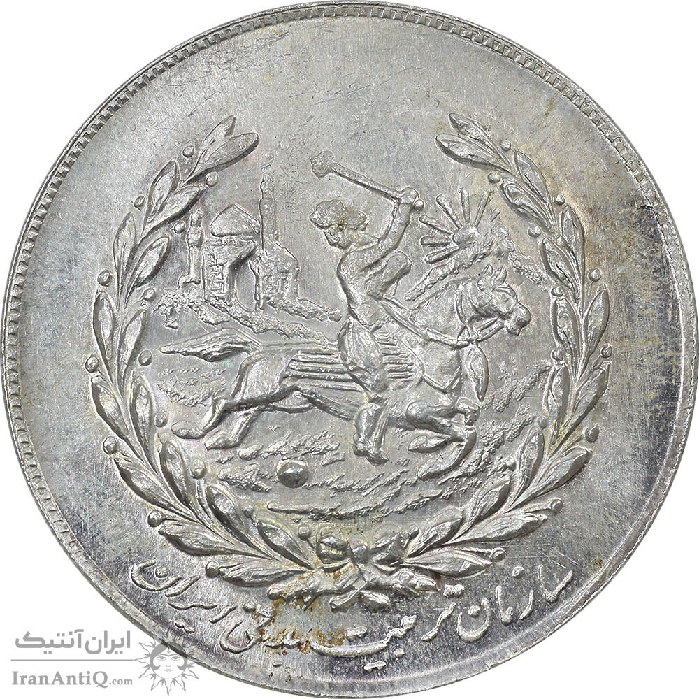 مدال نقره نوروز 1353 چوگان - MS63 - محمد رضا شاه