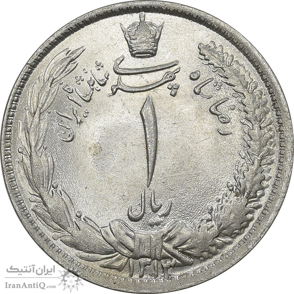 سکه 1 ریال 1313 - 3 تاریخ کوچک - MS63 - رضا شاه