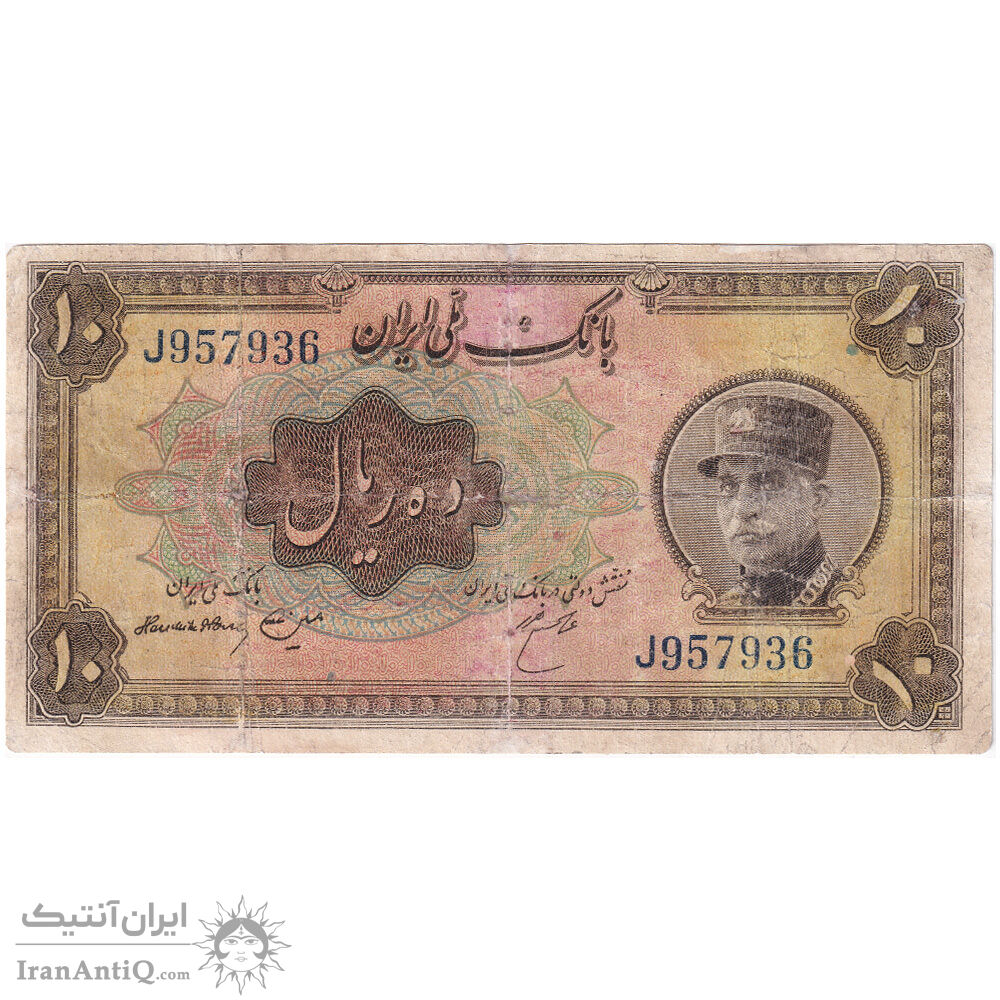 اسکناس 10 ریال کلاه بزرگ (هژیر - اعلا) - تک - VG - رضا شاه