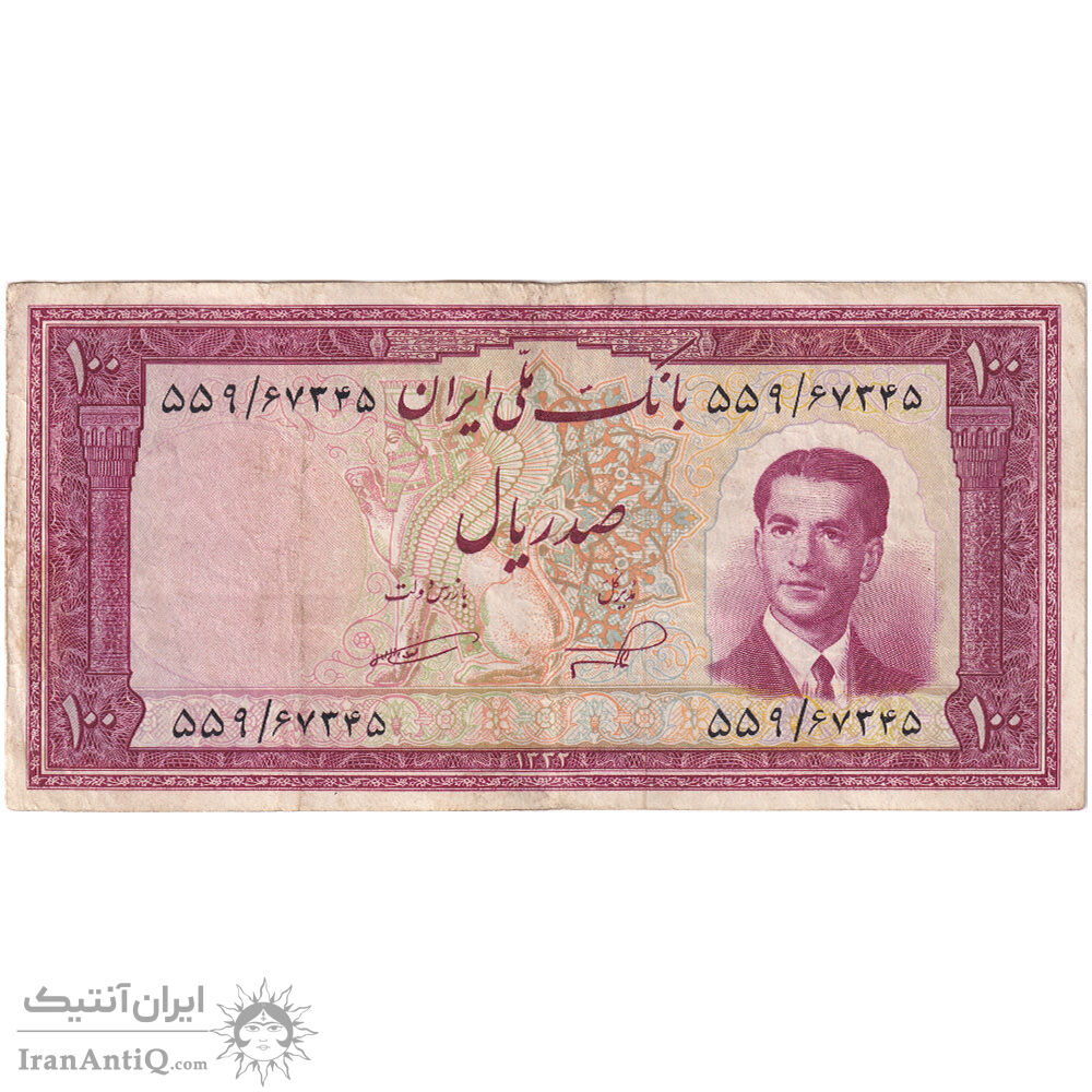 mohammad reza shah 100 rials 1332 iran banknote - VF35