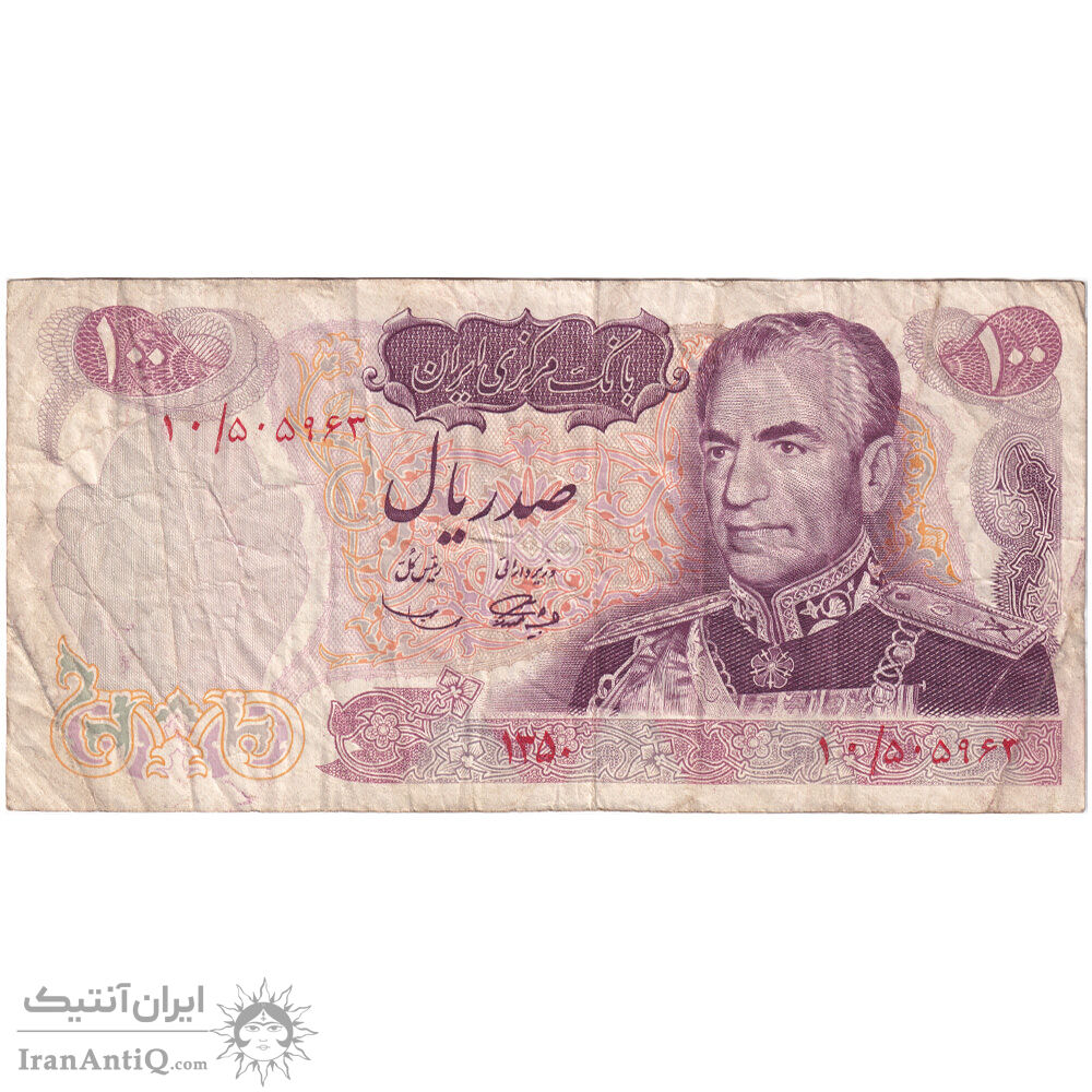 اسکناس 100 ریال 1350 - تک - VF30 - محمد رضا شاه