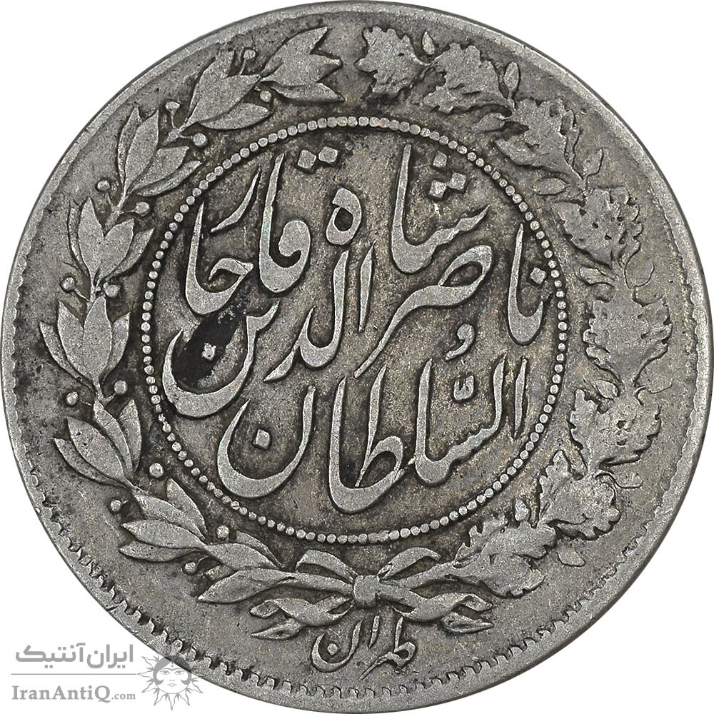 سکه 1000 دینار 1298/7 سورشارژ تاریخ - چرخش 45 درجه - VF35 - ناصرالدین شاه