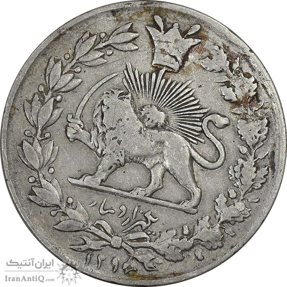 Iran 1000 dinars 1297 coin - surcharge date - rotate 45 degree - VF35 - naser aldin shah