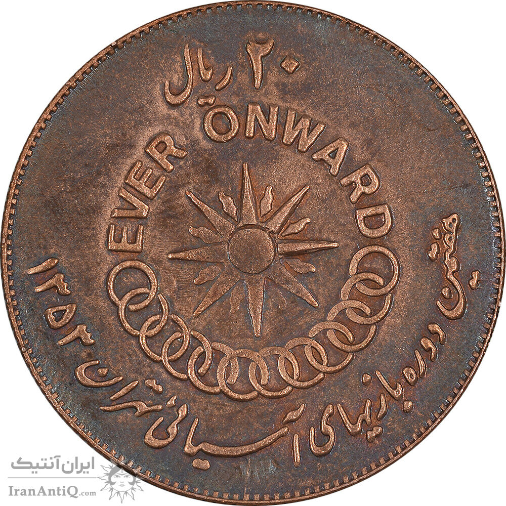 سکه 20 ریال مس 1353 بازی های آسیایی - ارور پولک اشتباه - MS61 - محمد رضا شاه