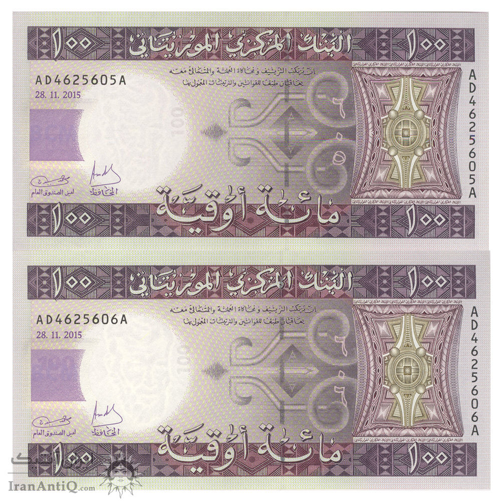 اسکناس 100 اوقیه 2015 جمهوری اسلامی - جفت - UNC64 - موریتانی