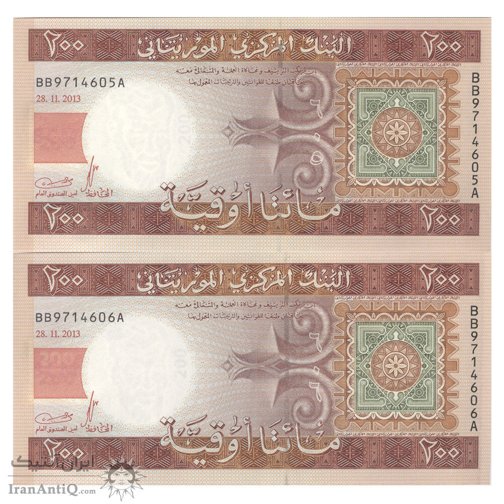 اسکناس 200 اوقیه 2013 جمهوری اسلامی - جفت - UNC64 - موریتانی