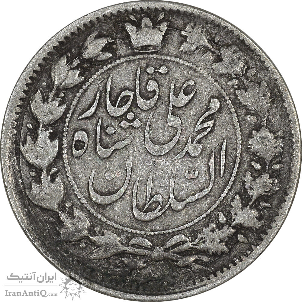 Iran 2 krans 1326 coin - 136 error date - VF35 - Mohammad ali shah