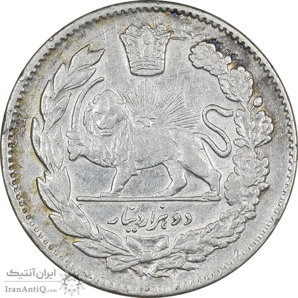 سکه 2000 دینار 1323 تصویری - EF40 - مظفرالدین شاه