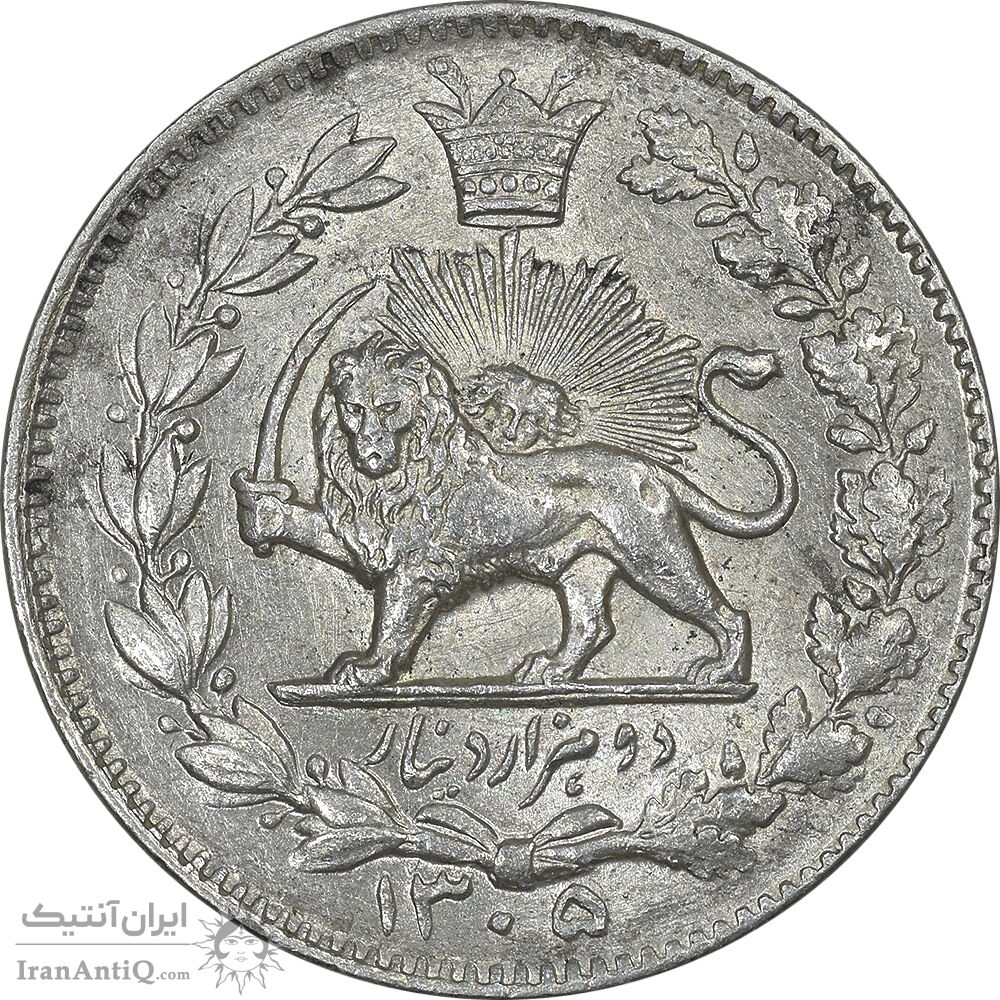 سکه 2000 دینار 1305 خطی - AU58 - رضا شاه
