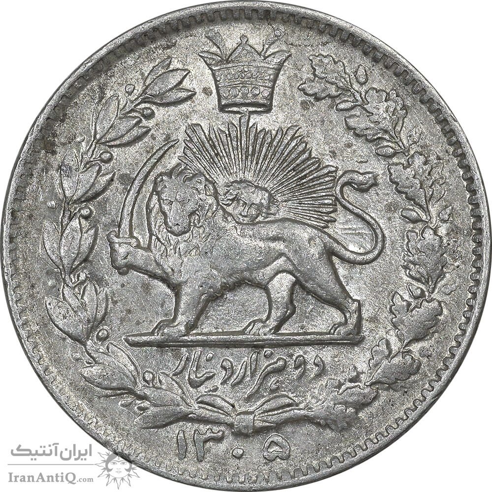 سکه 2000 دینار 1305 خطی - AU55 - رضا شاه