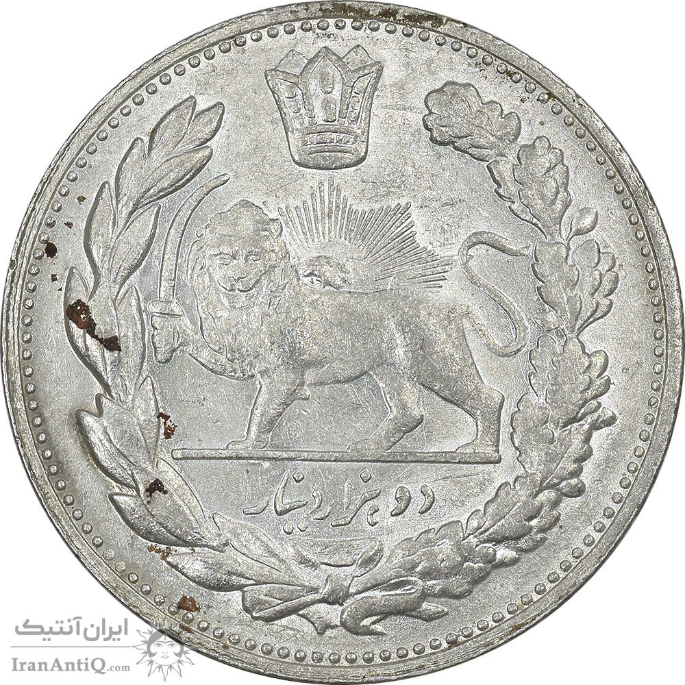 سکه 2000 دینار 1332 تصویری - صورت برجسته - MS61 - احمد شاه