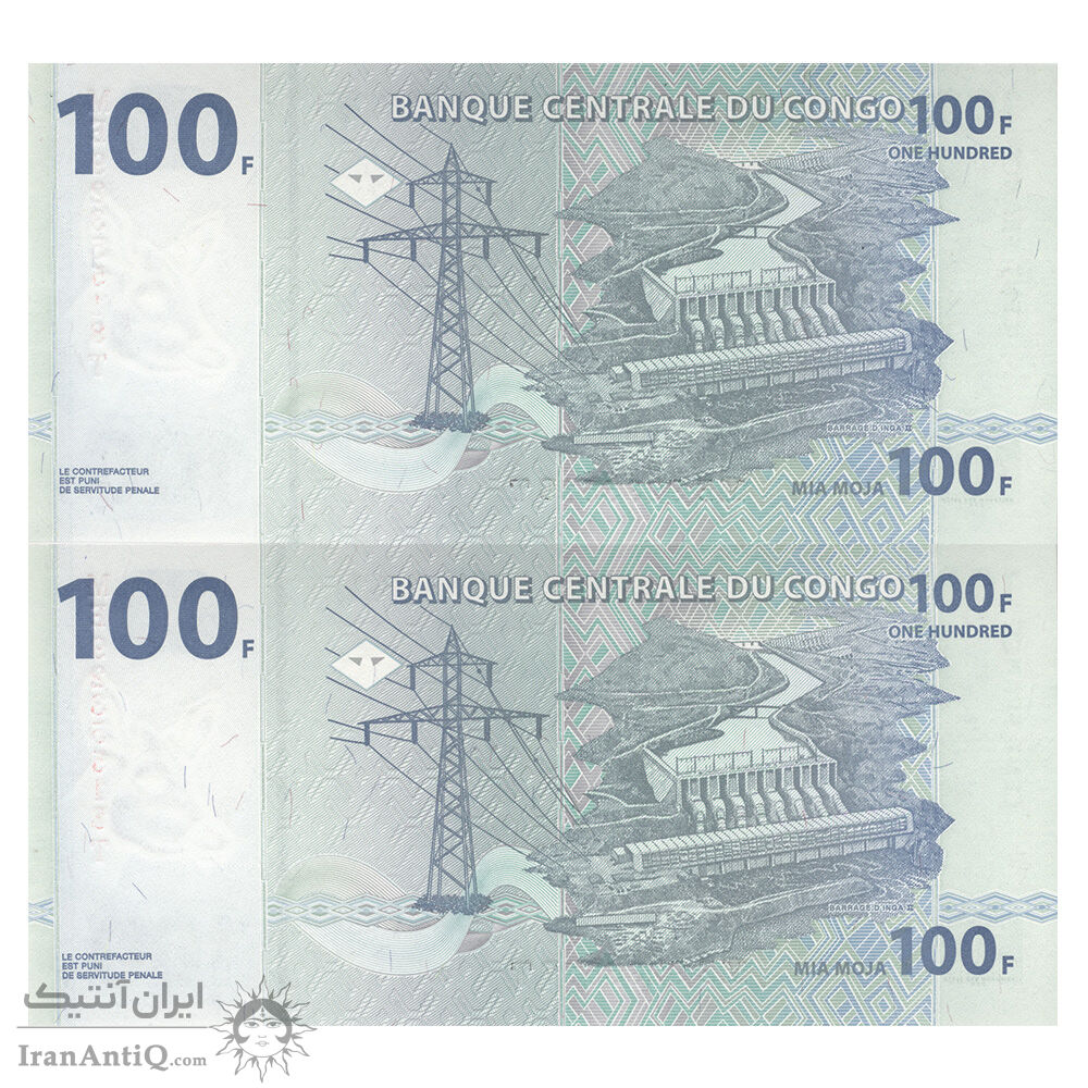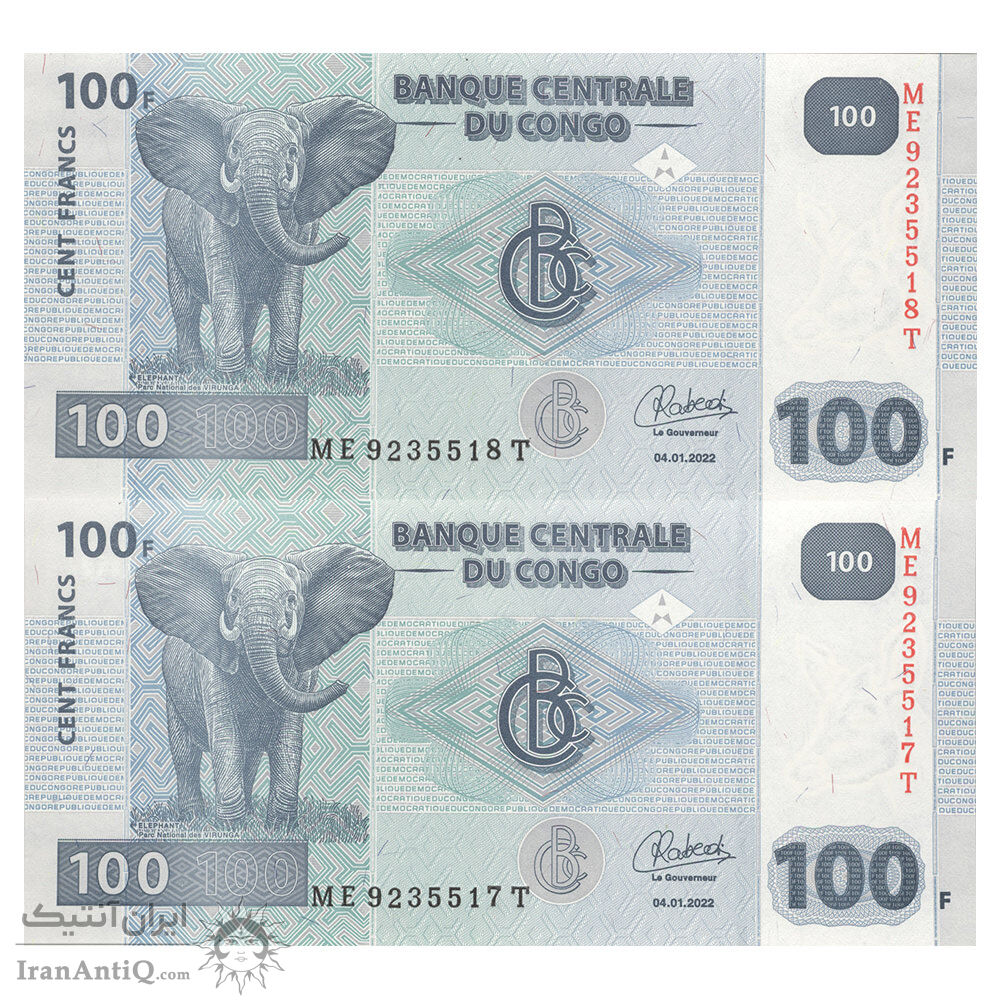 اسکناس 100 فرانک 2022 جمهوری دموکراتیک - جفت - UNC65 - کنگو