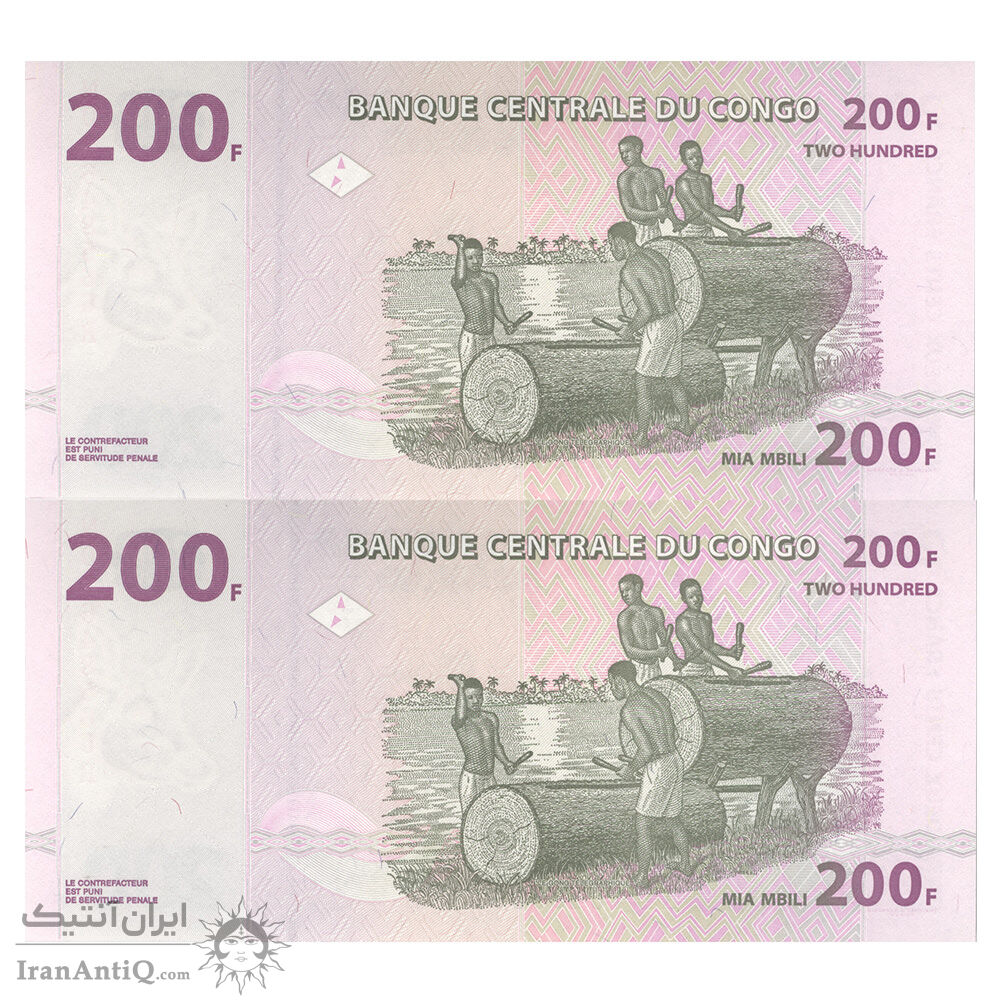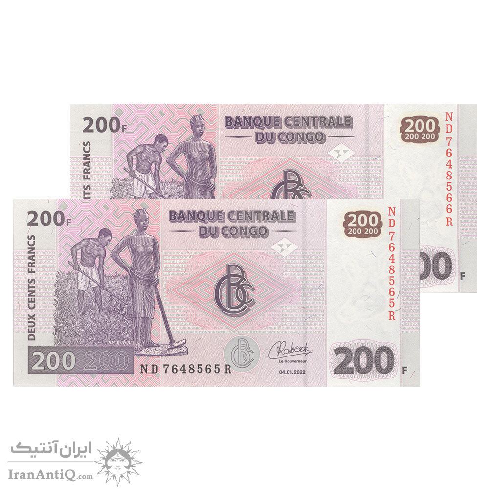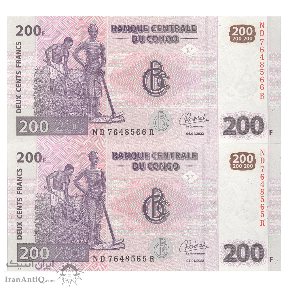 اسکناس 200 فرانک 2022 جمهوری دموکراتیک - جفت - UNC65 - کنگو