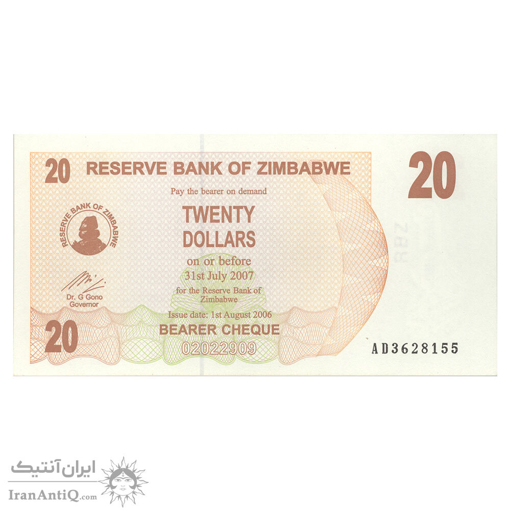 اسکناس 20 دلار 2006 جمهوری - تک - UNC65 - زیمبابوه